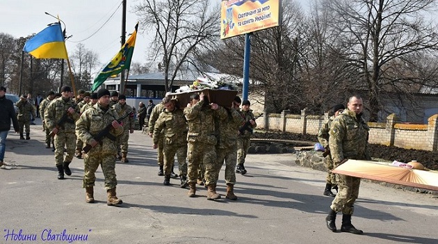 В городе Сватово Луганской области прошла церемония прощания с местным жителем, который служил добровольцем в АТО и погиб при выполнении боевого задания.