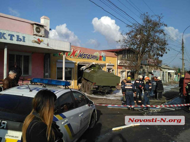Днем в пятницу, 17 марта, на ул. Веселиновской в Николаеве, у армейского бензовоза «ЗИЛ-131» на спуске отказали тормоза.