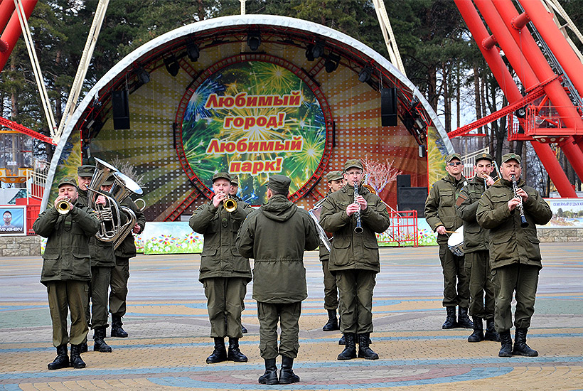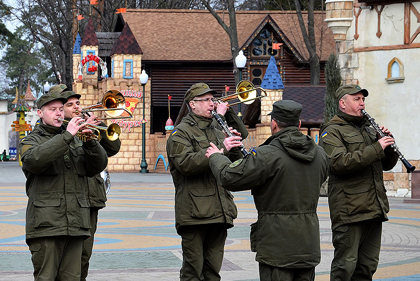 Далі естафету прийняв оркестр частини 3017 Нацгвардії України. У центральному парку Харкова хлопці влаштували невелике шоу, яке змогли побачити багато відвідувачів.