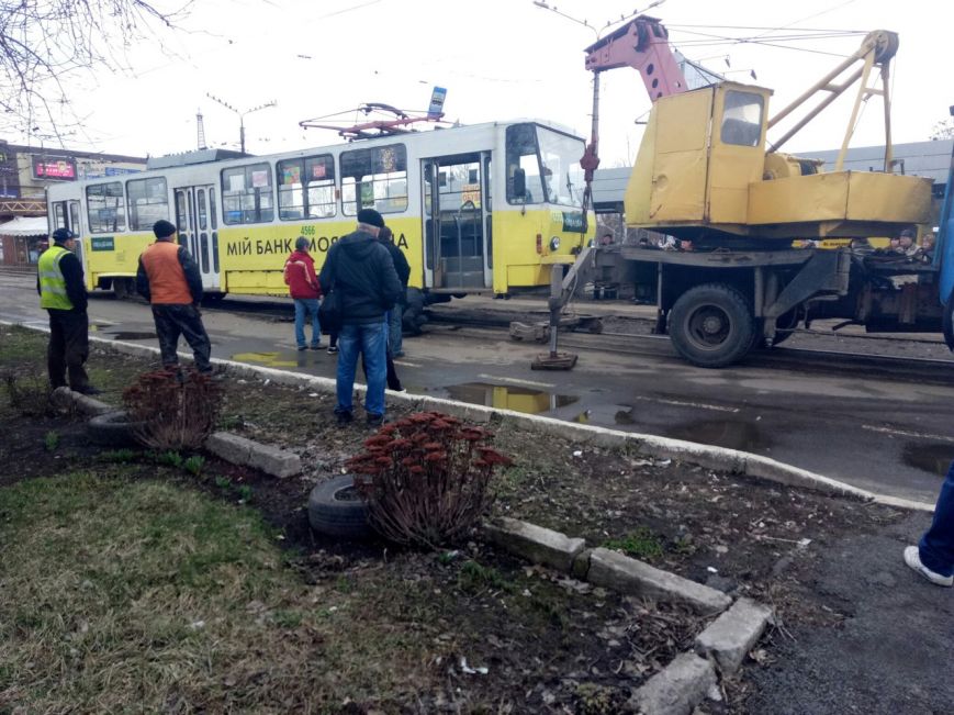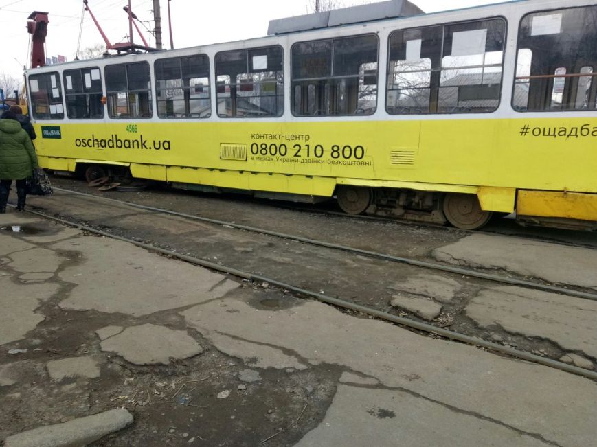 На место выехала ремонтная бригада одного их КП города. Коммунальщики подняли трамвай, чтобы починить поломку и убрать его с путей.