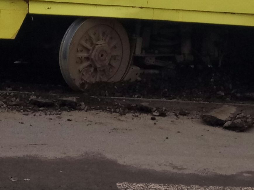 Вагон № 16А слетел с рельсов и его развернуло. У трамвая также вывернуло колесную пару и слетели диски, рассказали очевидцы в соцсетях.