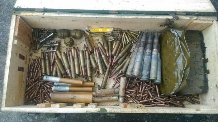 У районі Слов’янська на Донеччині у лісосмузі в купі сміття правоохоронці виявили схованку, з якої вилучили три гранати РГД-5 та Ф-1 із запалами, димову шашку, три постріли до автоматичного гранатомета та понад 600 набоїв різного калібру.