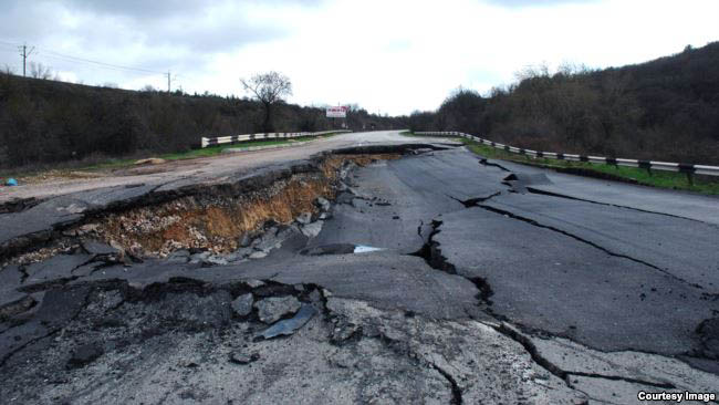 На трассе Севастополь-Бахчисарай-Симферополь с вечера 9 марта ограничили движение в связи с оползнем, который разрушил участок дороги. На трассе начали проводить срочные ремонтные работы, в связи с этим в сторону Симферополя движение осуществляется по одной полосе. Тем не менее, участок дороги продолжает разрушаться.