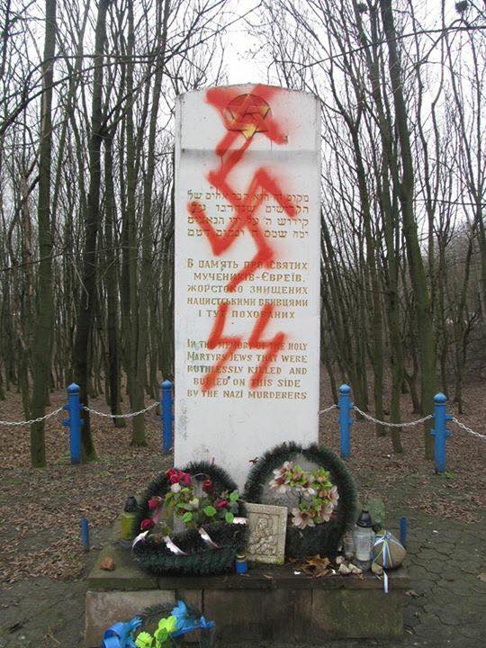 В Тернополе осквернили памятник жертвам Холокоста. На памятнике на трёх языках написано о том, что монумент установлен в память о святых мучениках-евреях, уничтоженных нацистскими убийцами и там захороненных. В Тернополе и области нацистами и украинской вспомогательной полицией во время погромов и экзекуцией было убито более 100 тысяч евреев.