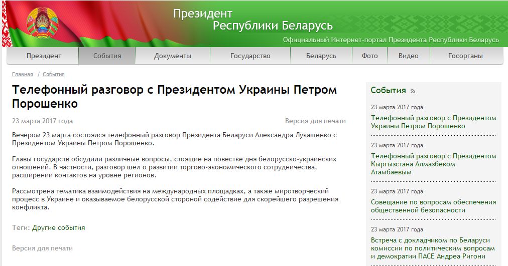 Об этом сообщили в пресс-службе белорусского президента.