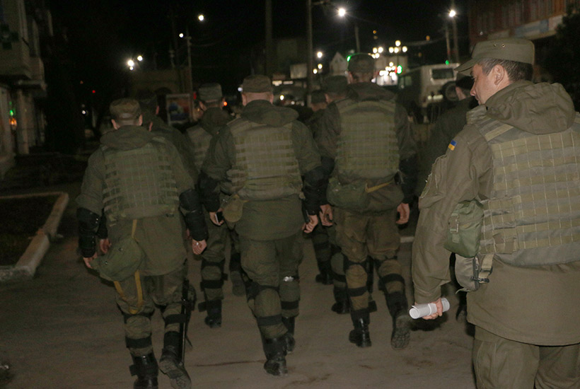 Кожна з трьох змін правоохоронців патрулює в середньому близько 20 маршрутів в найбільш пошкоджених районах міста, жителі яких евакуйовані. Гвардійці разом з Національною поліцією охороняють майно громадян від мародерів та працюють над недопущенням інших злочинів.