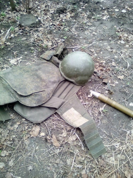 У районі Зайцевого на Донеччині, на території тимчасово непідконтрольній Україні, розвідувальна група Збройних Сил України під час виконання бойового завдання знайшла бронежилет, каску та постріл до РПГ російського виробництва.