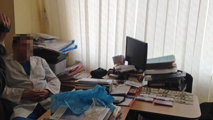 Служба безопасности Украины совместно с прокуратурой области и полицией задержала врача в его рабочем кабинете после получения всей суммы взятки.
