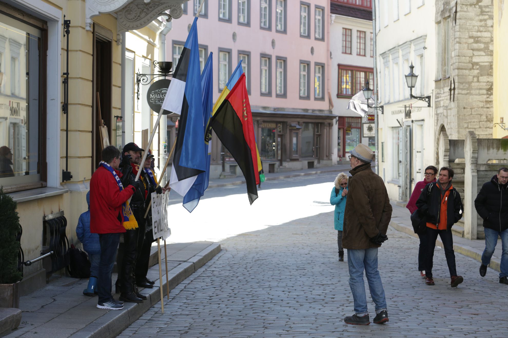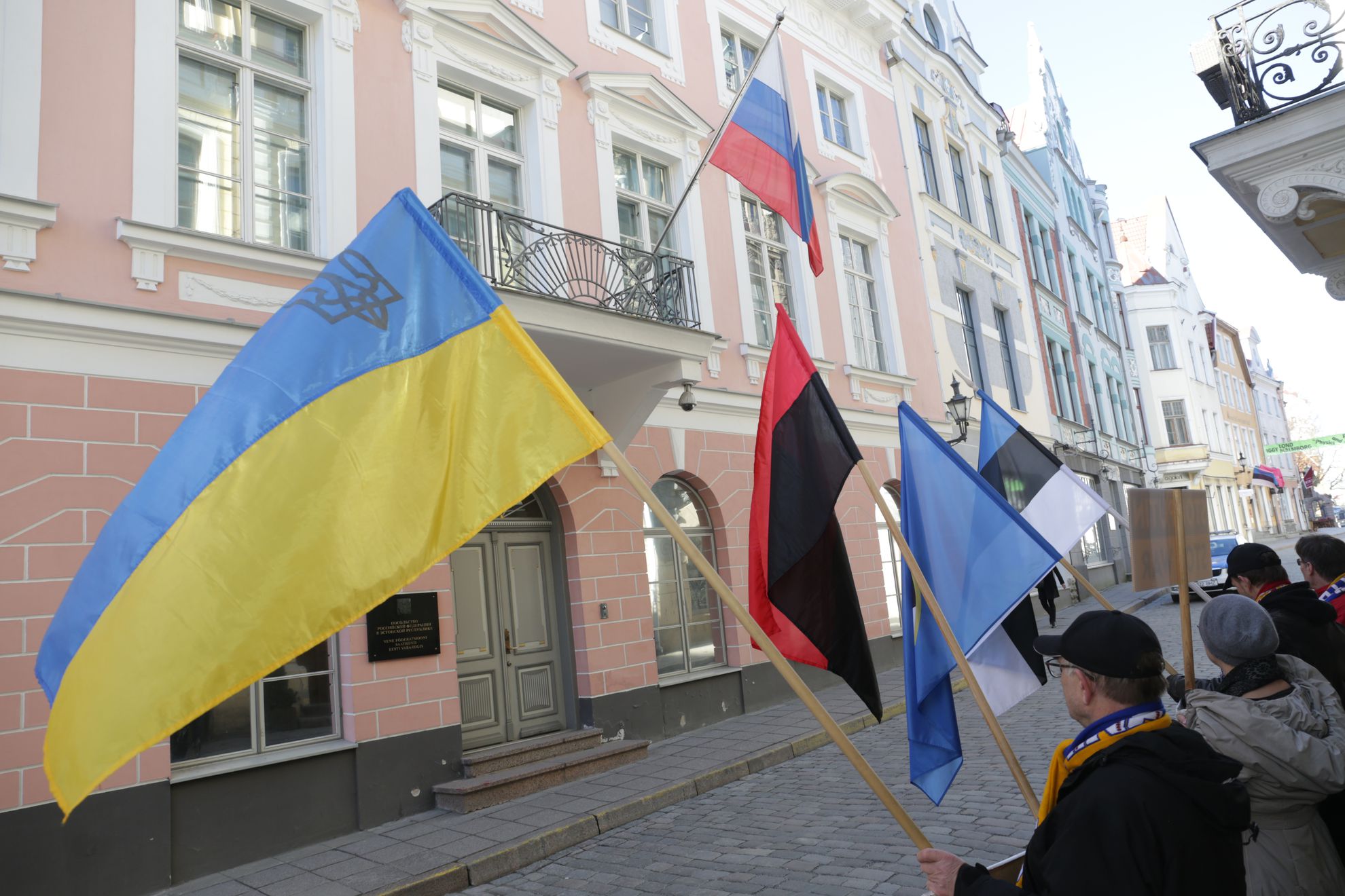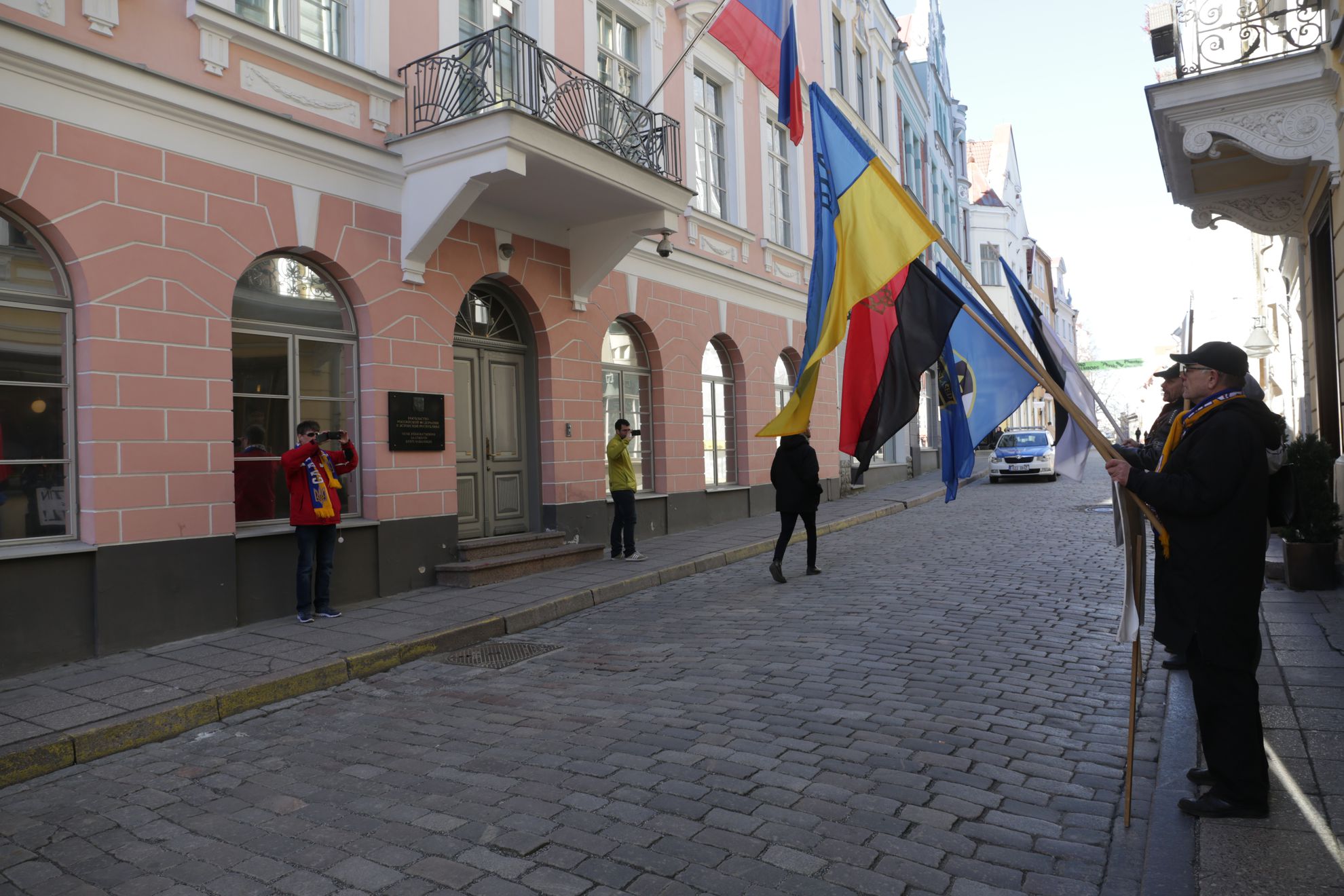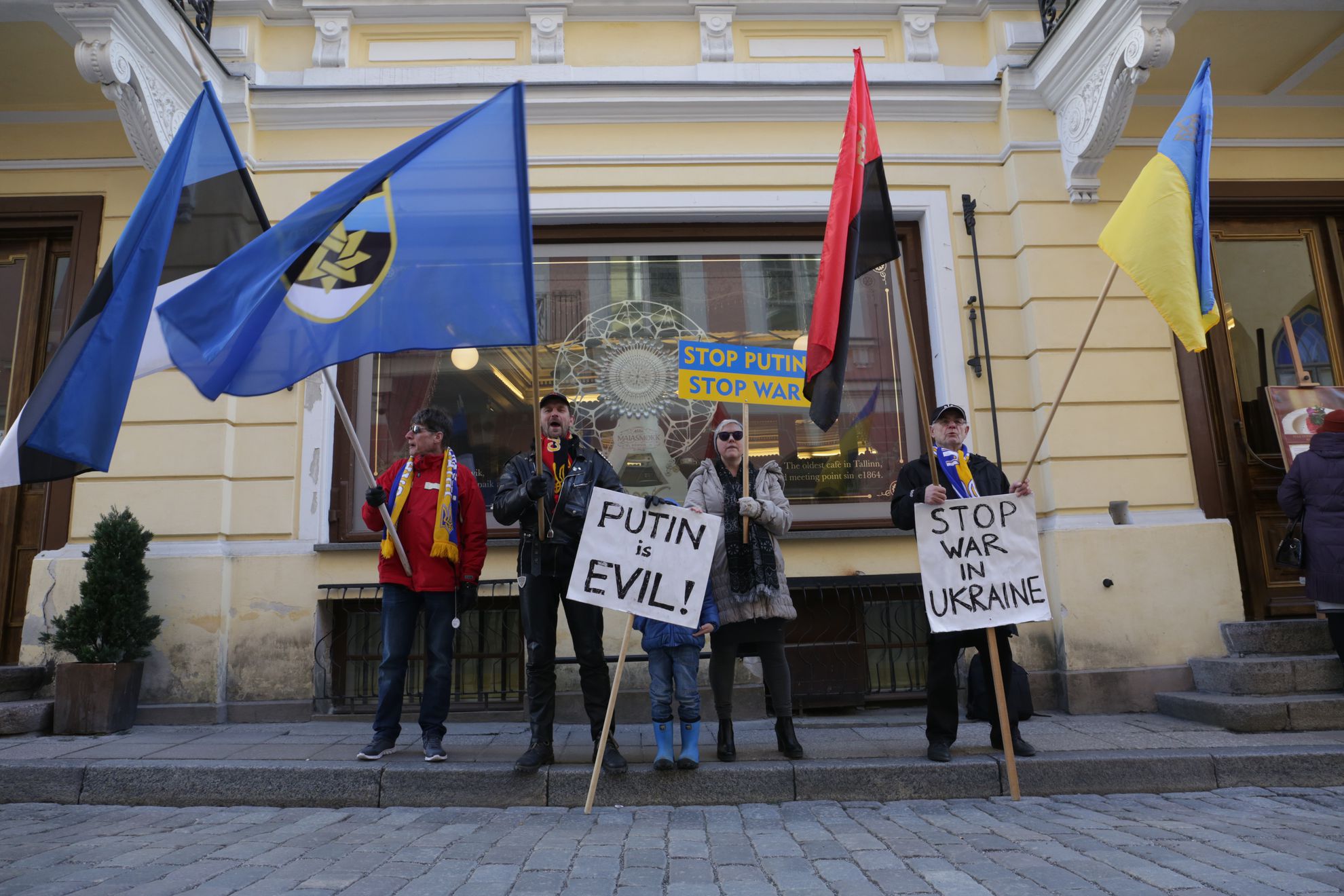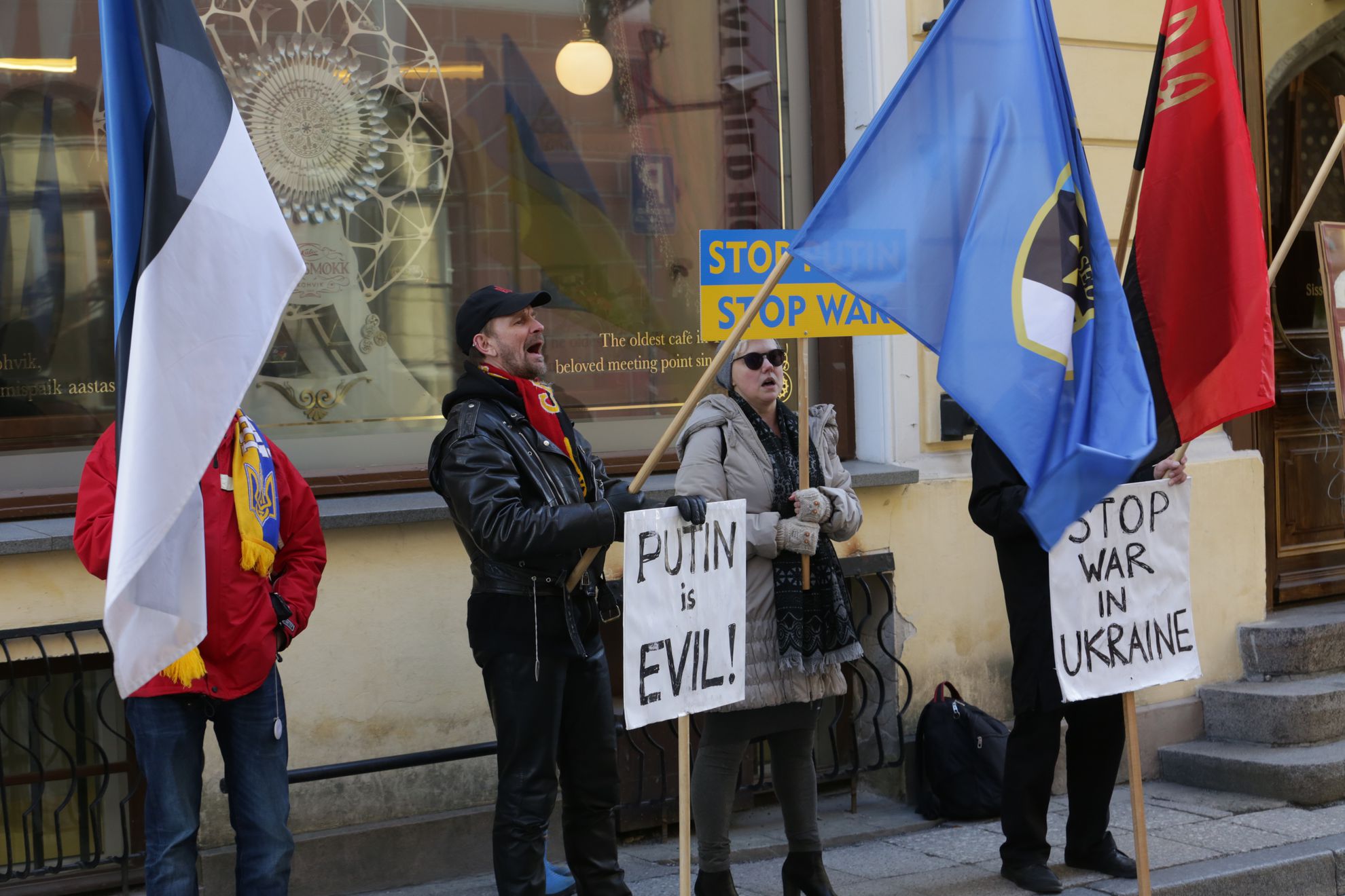 В среду, 28 марта, во второй половине дня перед посольством РФ в Таллинне собрались три человека, которые протестовали против политики Владимира Путина.