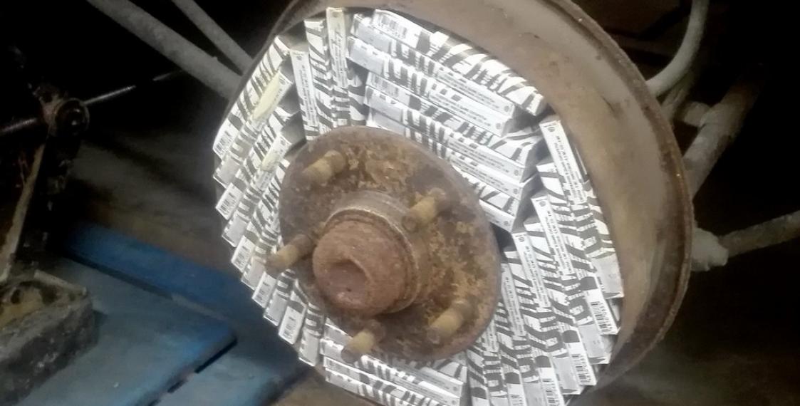 29-летний мужчина спрятал 80 пачек сигарет в задних колесах автомобиля Nissan, где проходит тормозная система.