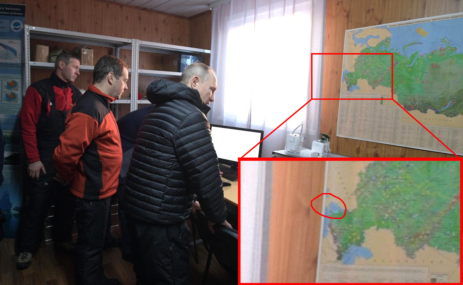 Президент России Владимир Путин во время своего визита на архипелаг Земля Франца-Иосифа сделал фотографию на фоне карты с украинским Крымом.