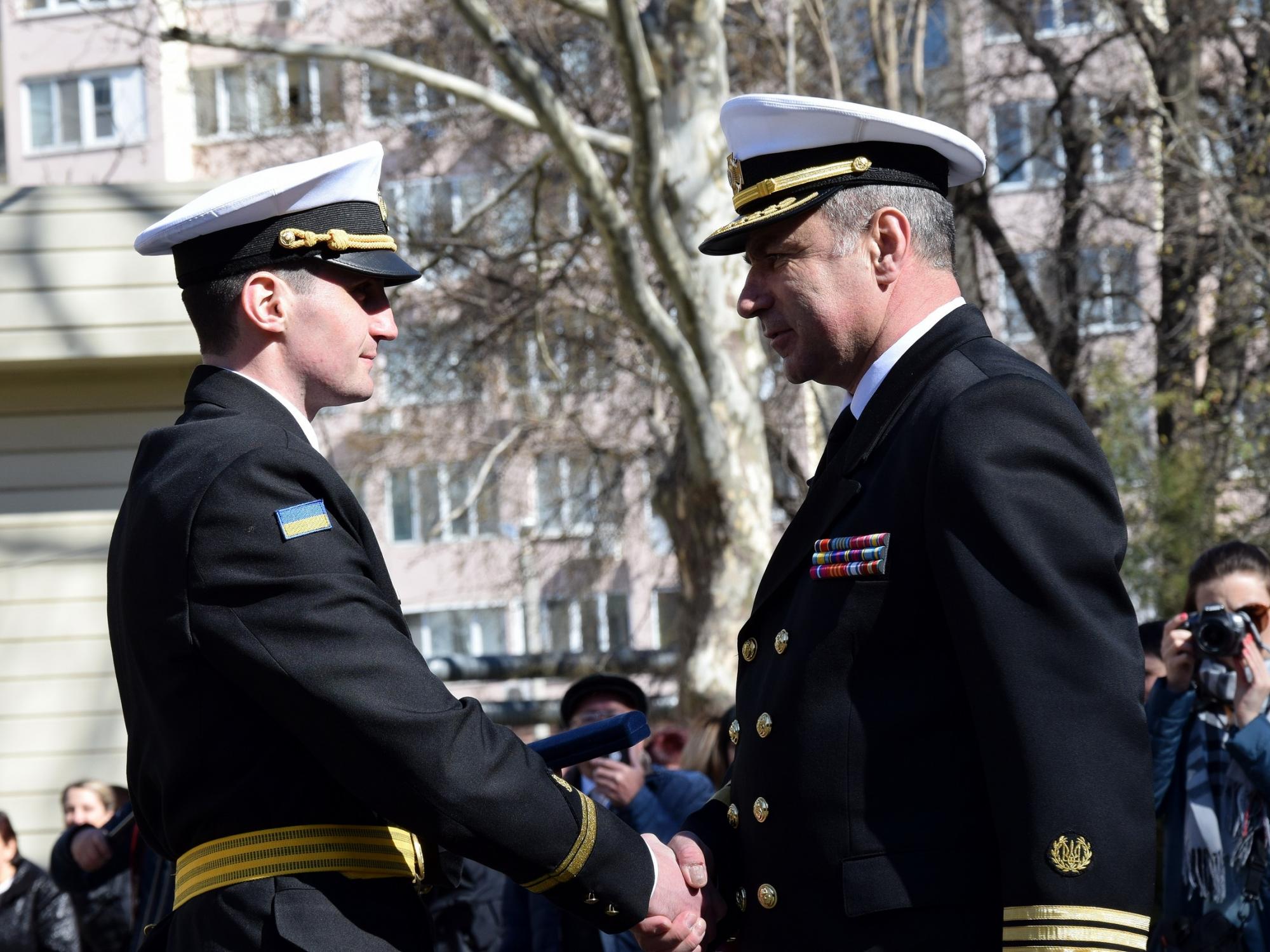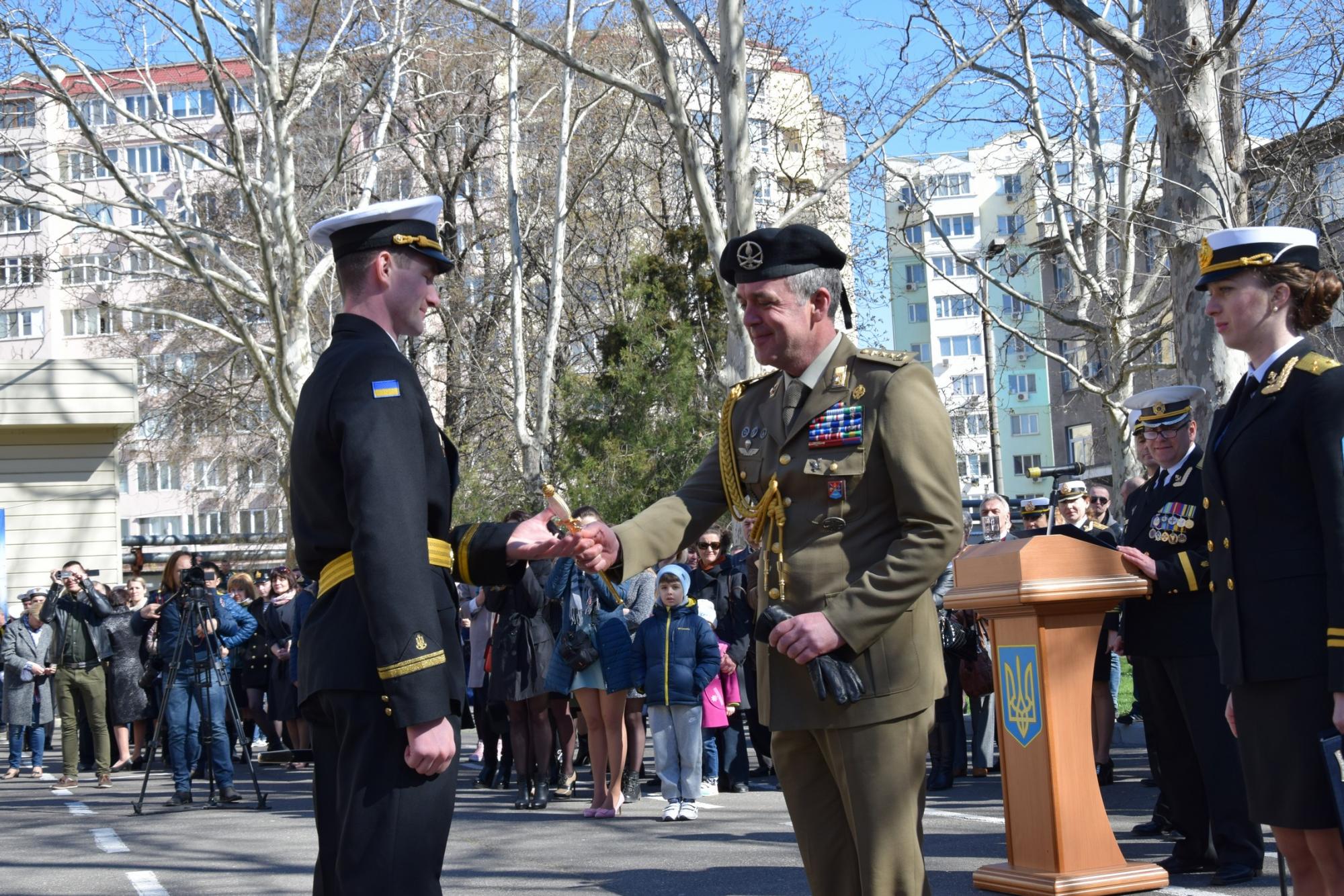 Два випускника вишу Олександр Красюк та Василь Костишак отримали дипломи з відзнакою. Традиційно, одному з кращих випускників лейтенанту Івану Довгих, який добре зарекомендував себе під час навчання та стажування на іноземному кораблі було вручено військово-морський кортик ВМС Італії.