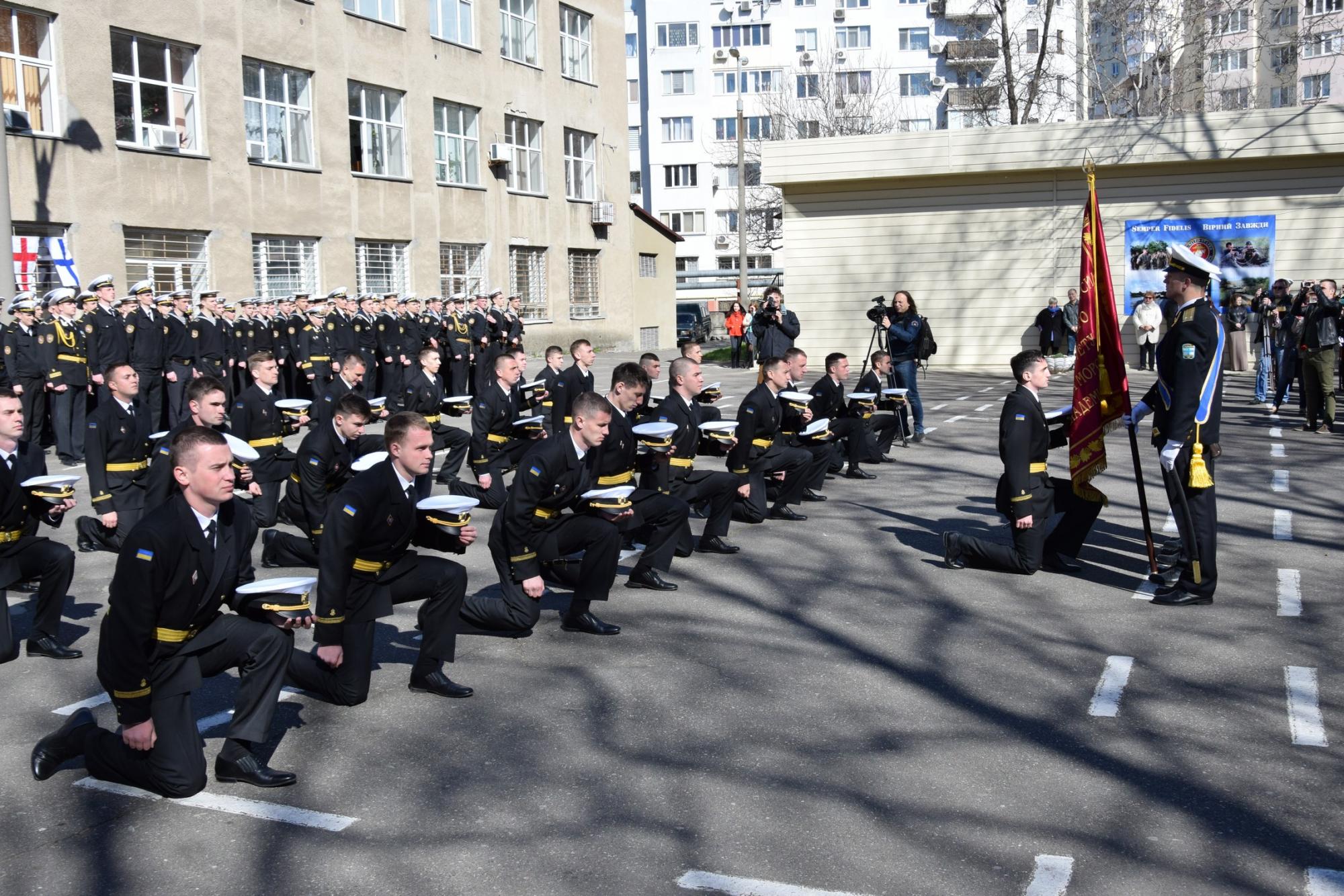 Довідково: 4 квітня 2014 року 103 вірні присязі українському народу курсанти Академії ВМС імені Нахімова (сьогоднішні випускники на той час були курсантами 2-го курсу цієї академії) передислокувалися разом з частиною командного і викладацького складу вишу до Одеси у зв’язку з анексією Російською Федерацією АРК і міста Севастополя. Пізніше Академію ВМС імені Нахімова було розформовано. 1 вересня 2014 року курсанти продовжили навчання на новоствореному згідно з дорученням Кабінету Міністрів України факультеті військово-морських сил Одеської національної морської академії. У 2016 році на базі факультету було сформовано Інститут Військово-Морських Сил Національного університету «Одеська морська академія».