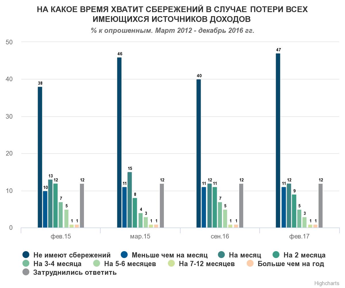 В феврале 2017 года около половины (47%) взрослых украинцев заявляли, что вообще не имеют сбережений, свидетельствуют данные опроса Research & Branding Group.