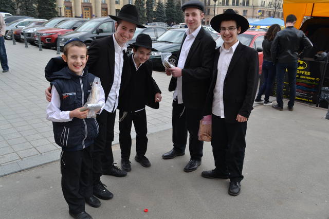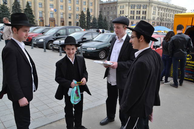 На площади Свободы сегодня, 7 апреля, представители Харьковской синагоги провели акцию, приуроченную ко дню рождения Любавичского ребе.