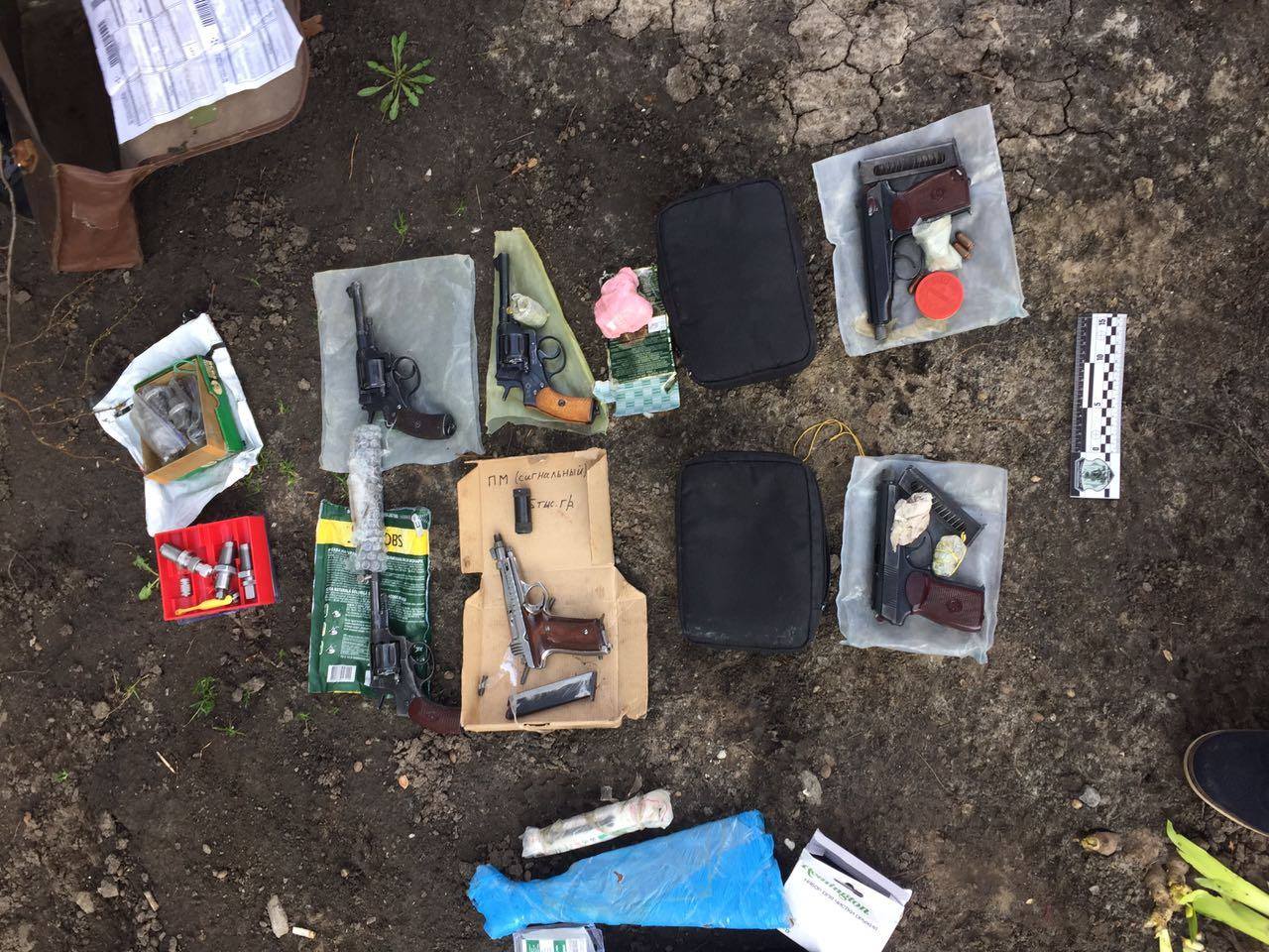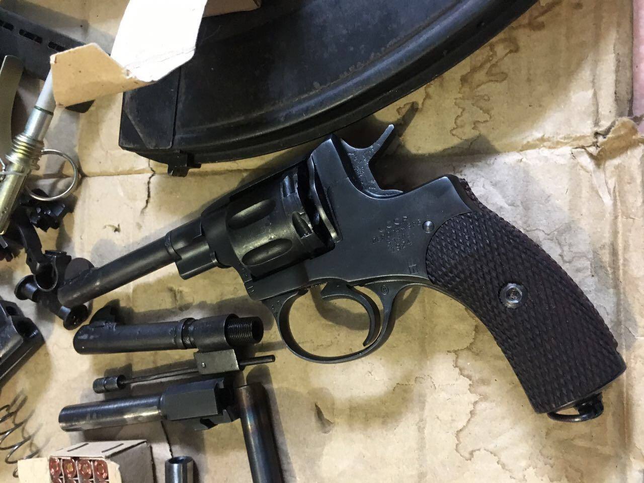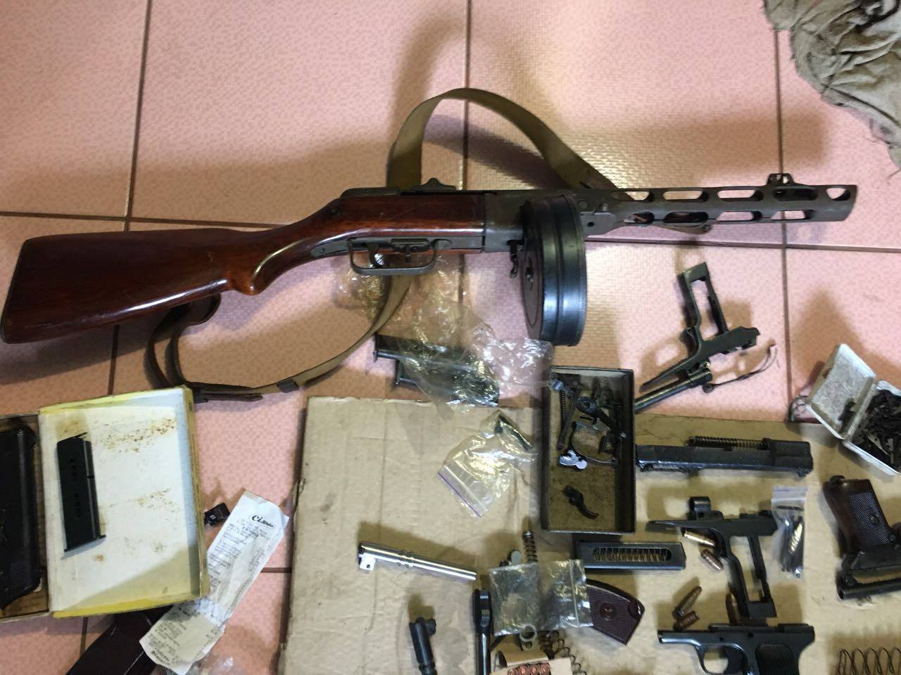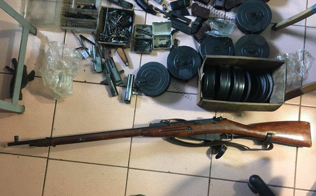Оперативники спецслужби із залученням бійців спецпідрозділу "Альфа" затримали двох організаторів нелегального бізнесу у Харкові та Сумах. Під час обшуків за місцями їх мешкання співробітники СБ України вилучили чотирнадцять одиниць бойової вогнепальної зброї, в тому числі заводські та переобладнані пістолети і револьвери, пістолет-кулемет ППШ, гвинтівку Мосіна, запчастини та комплектуючі, гранату РГД-5 та півтисячі патронів. Правоохоронці виявили металообробні станки для виготовлення комплектуючих і набоїв різного калібру. У ділків також вилучено вісімдесят тисяч гривень, банківські картки для розрахунків з клієнтами та документи про здійснення поштових відправлень замовникам.