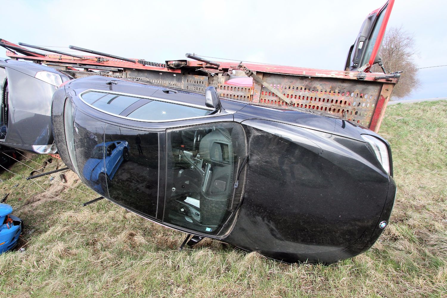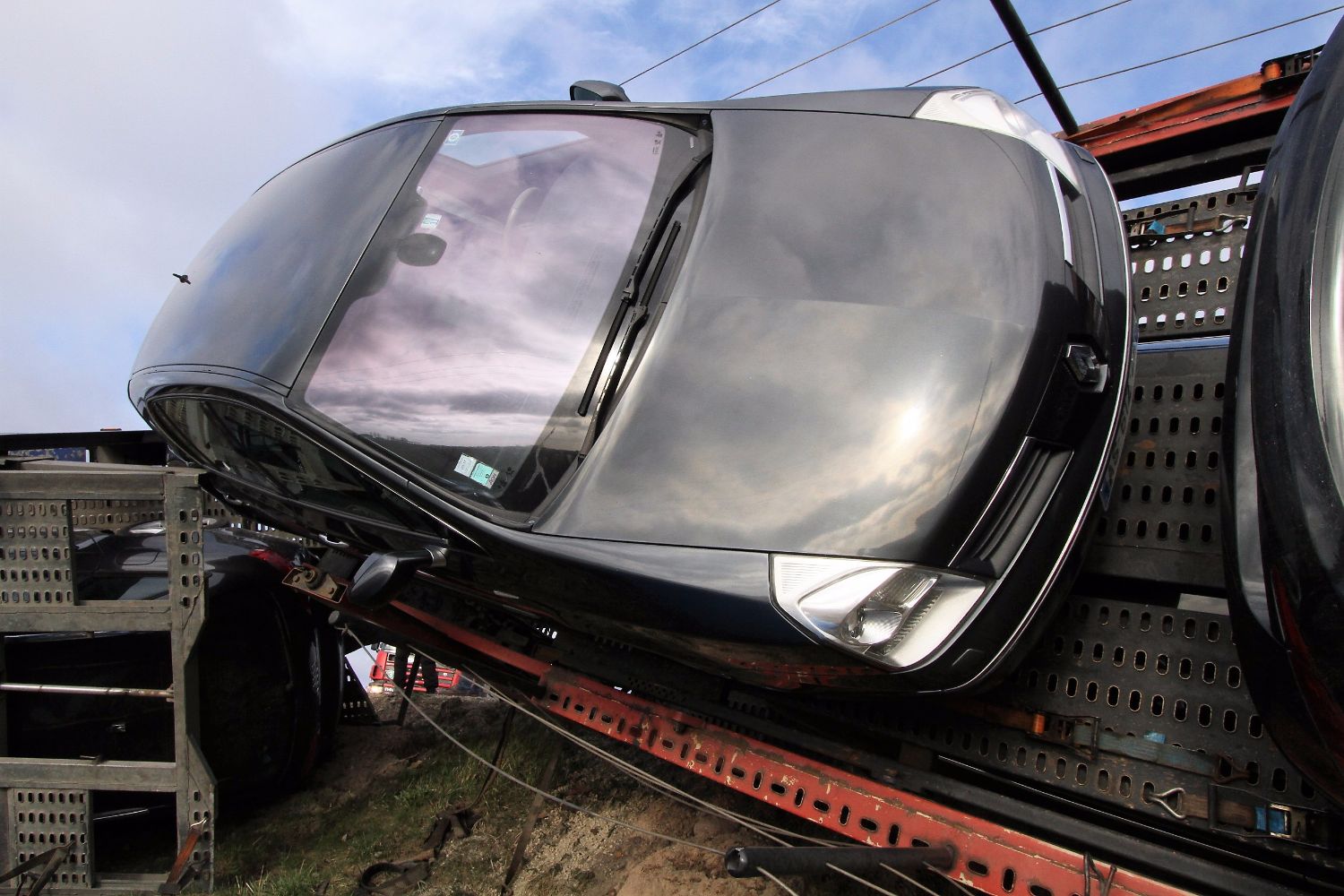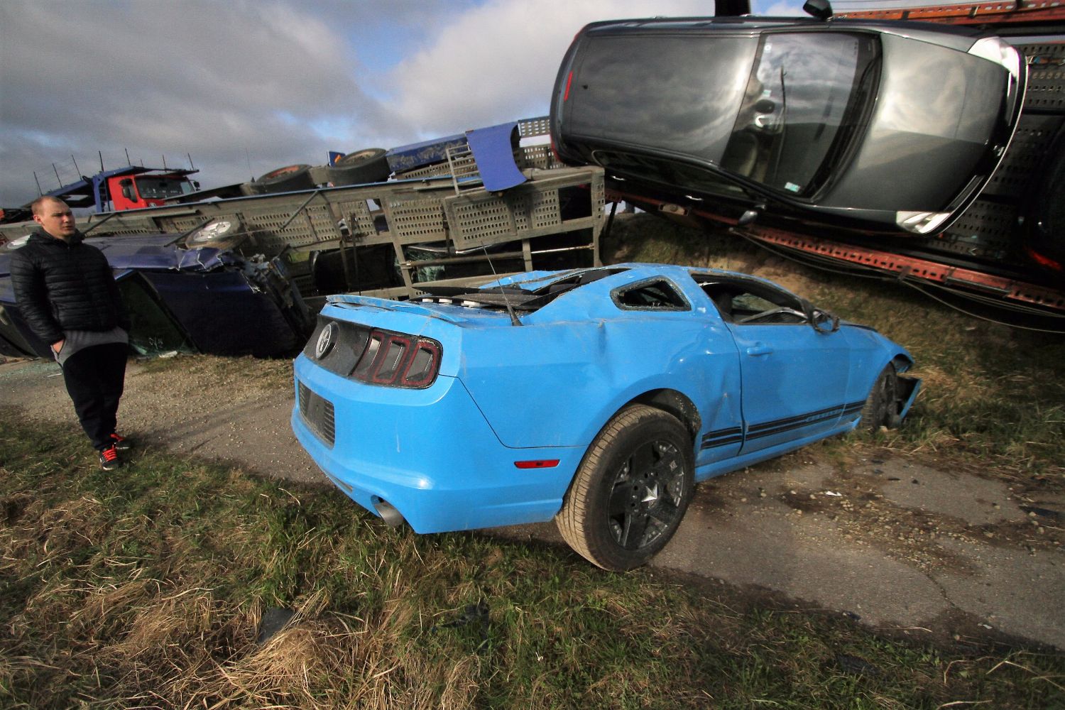 Вечер понедельника выдался не совсем удачным для одного водителя грузовика, у которого в прицепе находилось множество дорогих и побитых автомобилей, среди которых были «Ferrari», BMW, и «Ford Mustang».