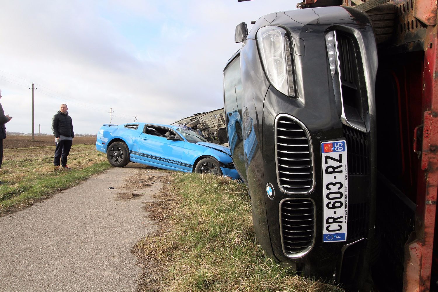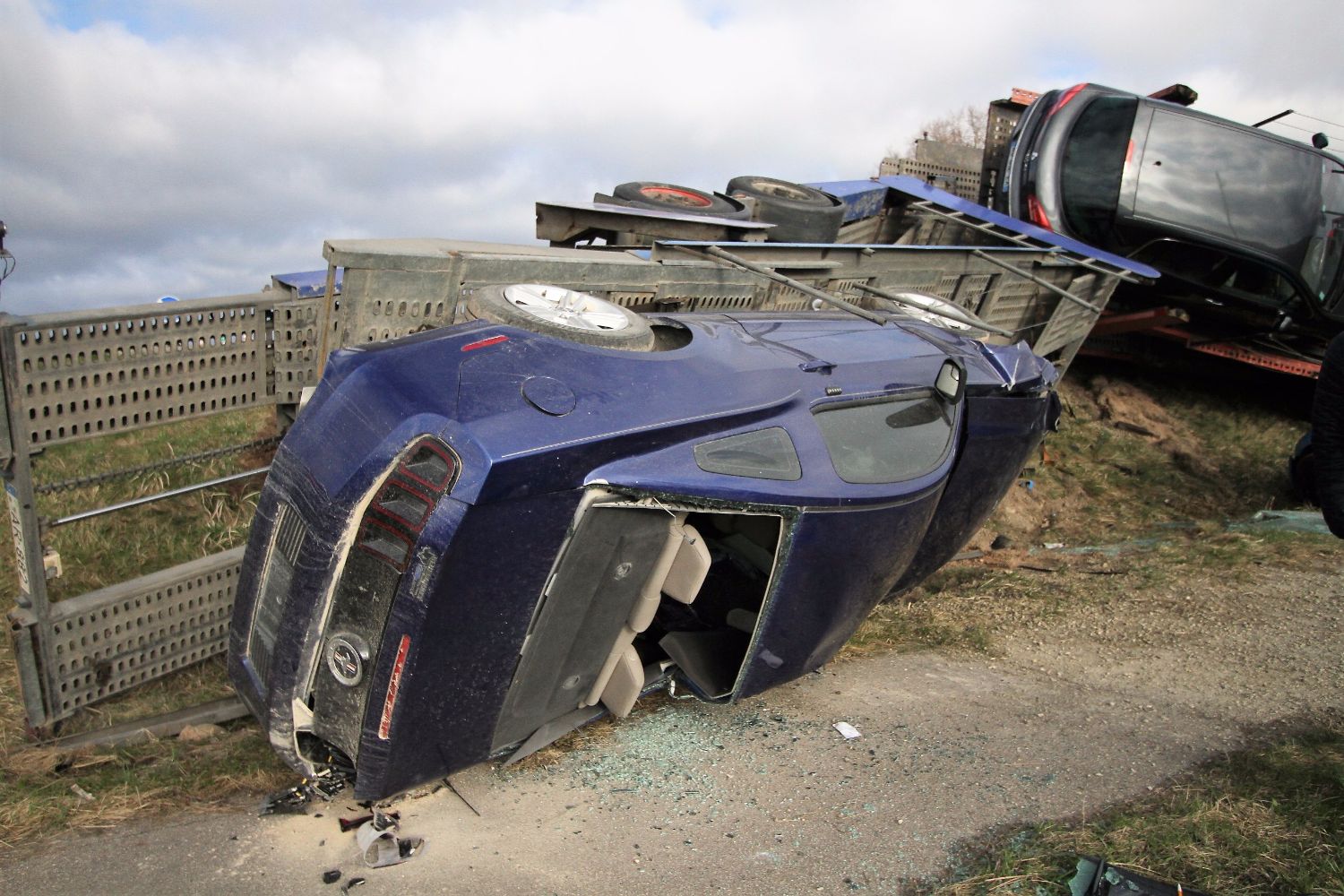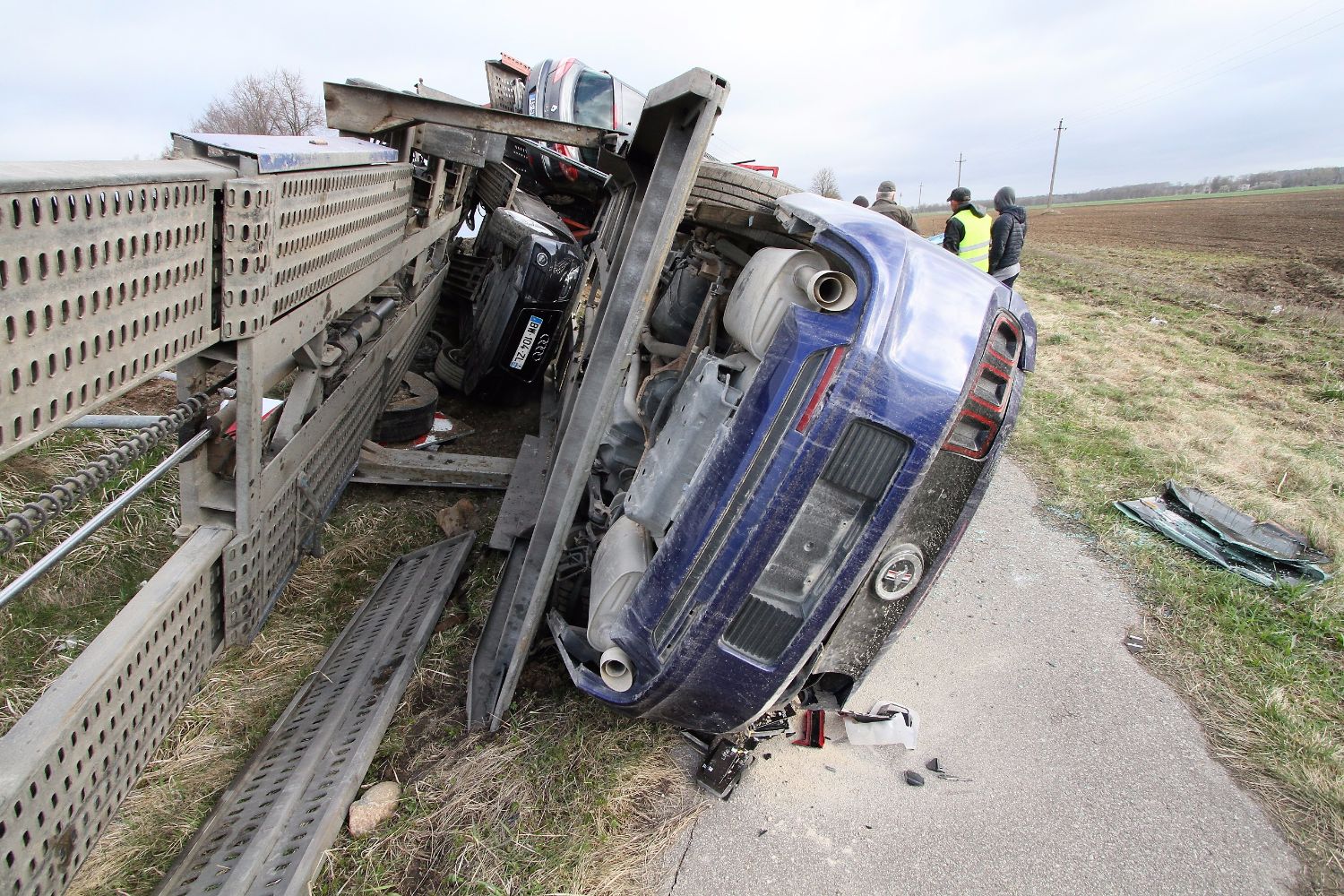 Вечер понедельника выдался не совсем удачным для одного водителя грузовика, у которого в прицепе находилось множество дорогих и побитых автомобилей, среди которых были «Ferrari», BMW, и «Ford Mustang».