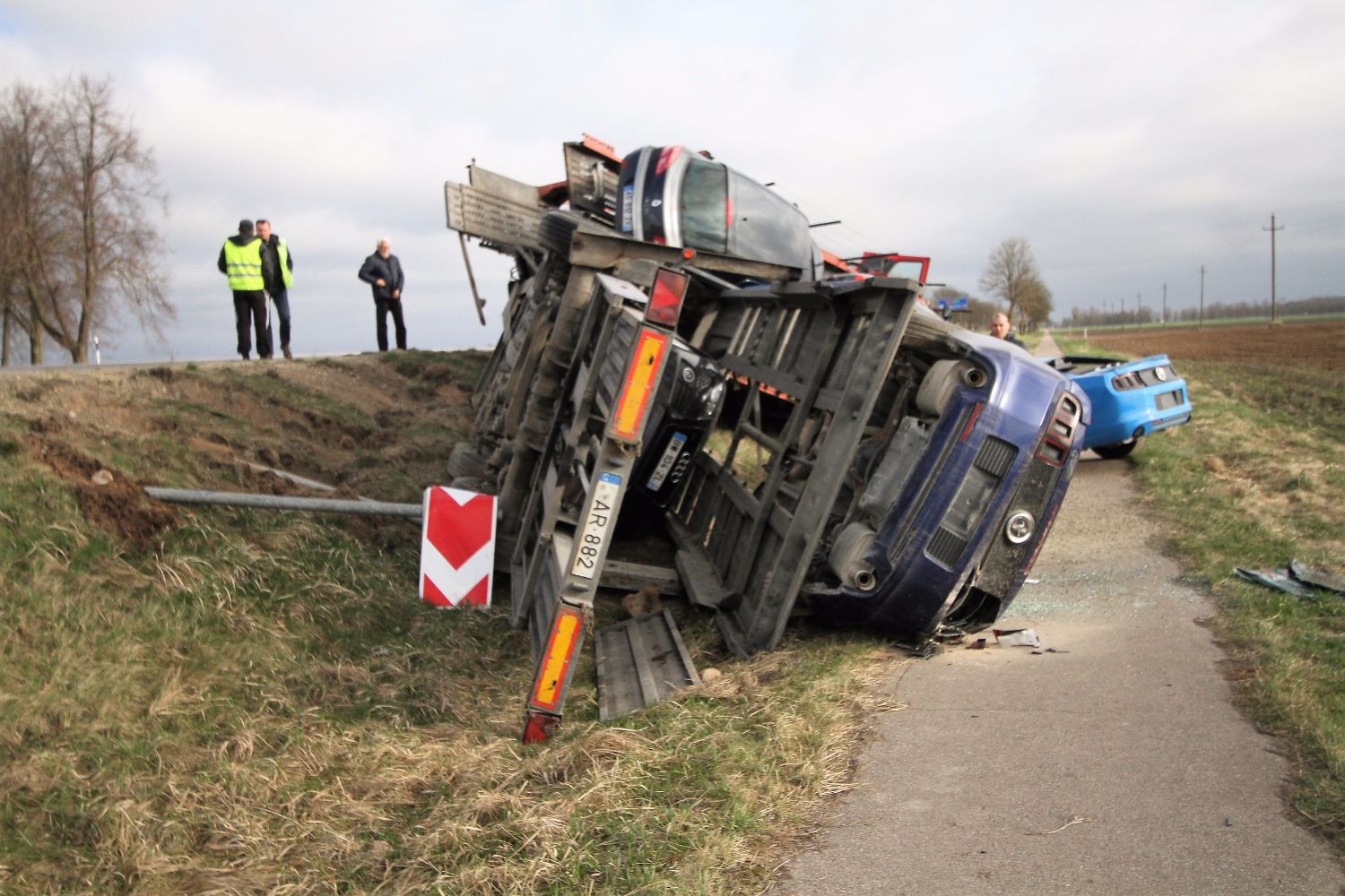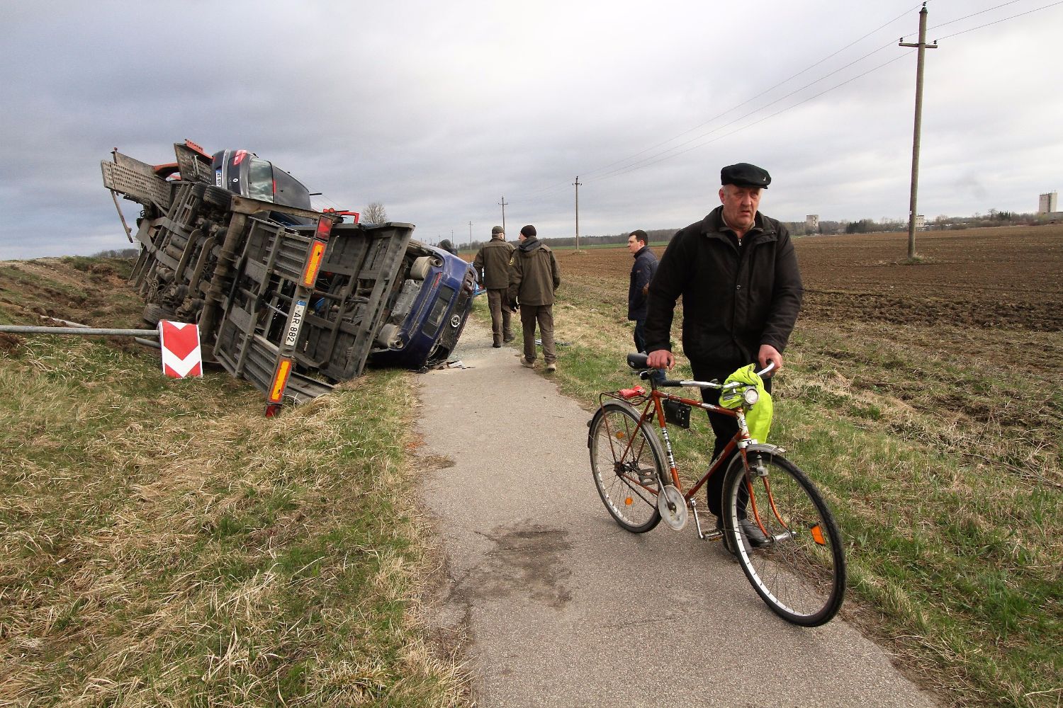 Литовские СМИ сообщили, что автоводитель не остановился у знака «STOP», и, пытаясь повернуть, съехал с дороги.