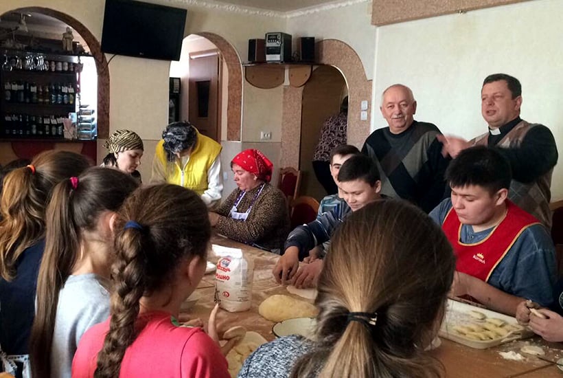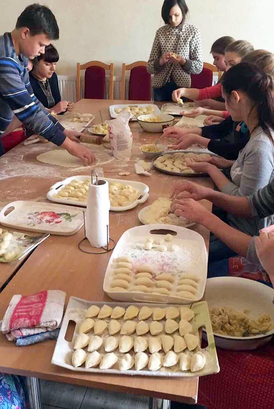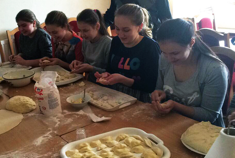 До роботи долучались і діти, і дорослі, і священнослужителі. За великим дружнім столом зібралася громада селища, яка приготувала домашніх смаколиків та передала у зону АТО.