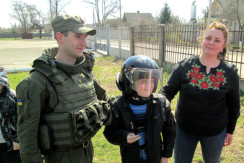 Малышей ждала довольно насыщенная программа, во время которой военнослужащие демонстрировали образцы обмундирования и специальных средств, которые есть на вооружении в Нацгвардии, а также рассказывали об их назначении и характеристиках.