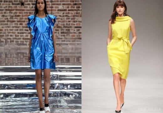 В этом сезоне будут модны платья из кожи, шифона, атласа и шелка, а также трикотажа.