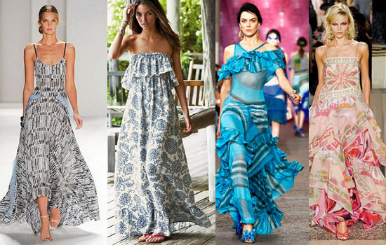 Какое же лето без этих длинных в пол летних платьев с открытыми руками и плечами. Легкие, воздушные, яркие и однотонные - они будут обязательным украшением этого сезона.