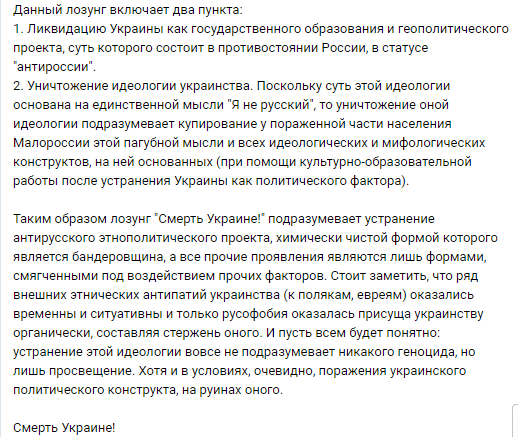 Так, например, в августе 2014 года подсудимая опубликовала репост из российского паблика с громогласным названием "Смерть Украине", авторы которого требовали "уничтожить государственное образование и идеологию украинства".