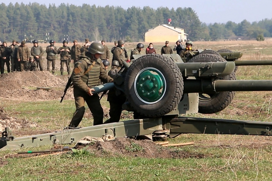 «По легенде учений на нас двигались 6 танков противника. По командам старшего офицера батареи мы фиксировали эти цели и уничтожали их», - рассказывает старший наводчик гаубицы Д-30 старший солдат Владимир Кукурудзяк.
