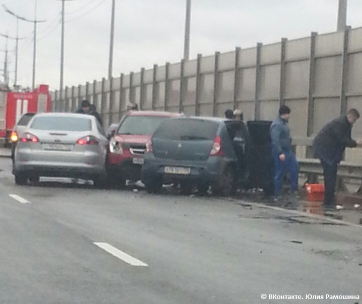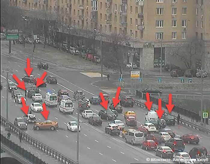Более 10 автомобилей столкнулись на Бородинском мосту в центре Москвы. Никто, к счастью, не пострадал.