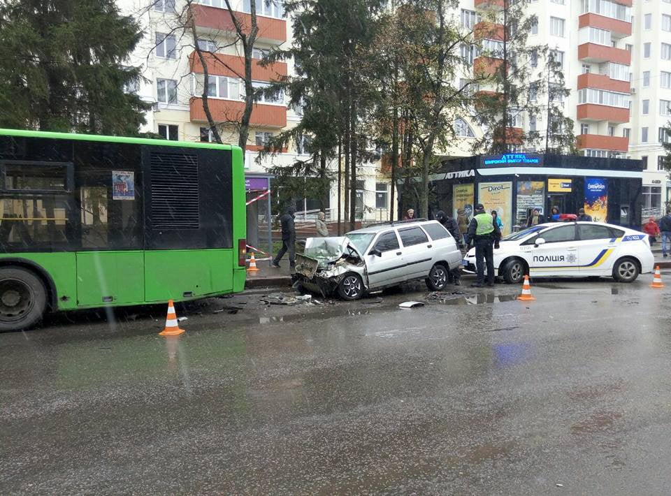 Сегодня около 11:35 вблизи дома 5 на проспекте Архитектора Алешина в Харькове 44 летний водитель, управляя автомобилем ВАЗ 21114, двигаясь со стороны улицы Библика в направлении ул Мира влетел в маршрутный автобус, стоявшую на остановке общественного транспорта.