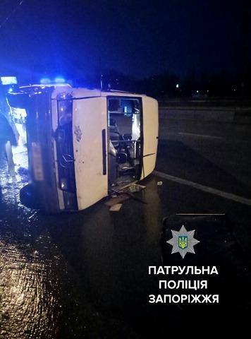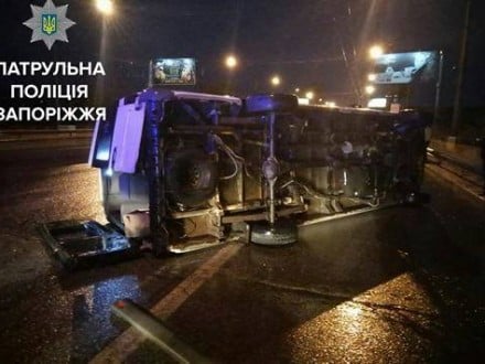 В центре Запорожья на дамбе между остановками общественного транспорта “Гагарина” и “Пушкина” перевернулась маршрутка. Об этом УНН сообщили в пресс-службе патрульной полиции.