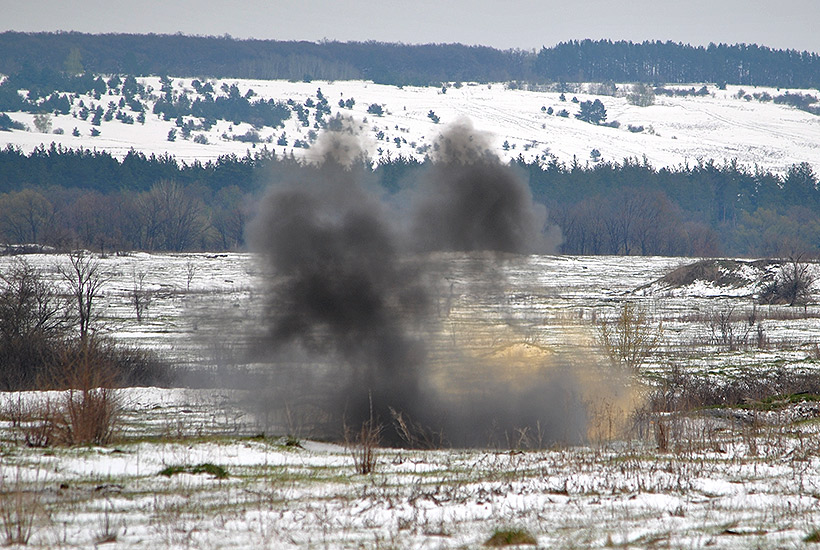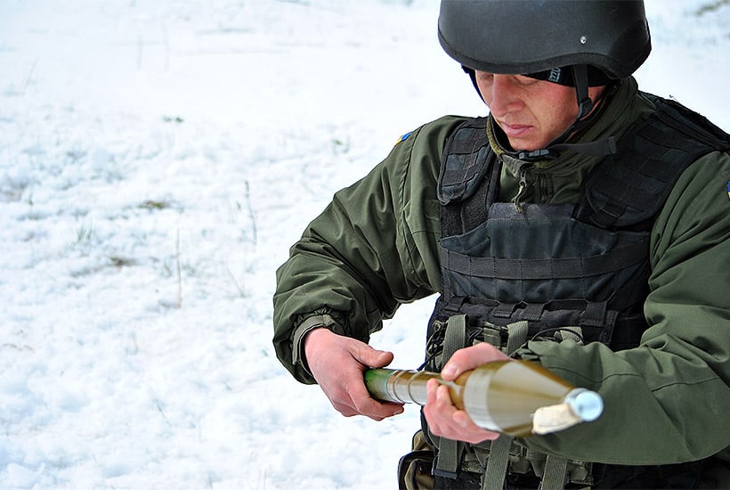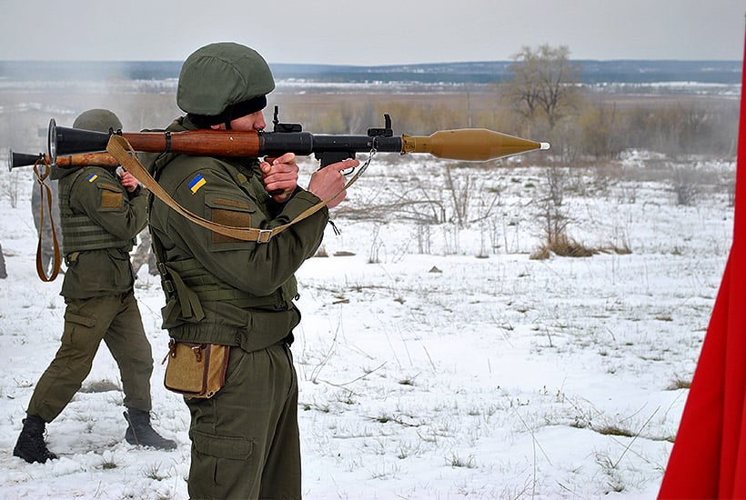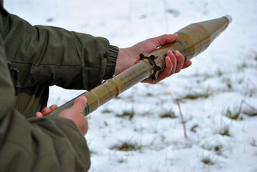 На полигоне военнослужащие по контракту и срочники вели огонь из гранатомета РПГ-7В из разных положений по отдаленным целям.