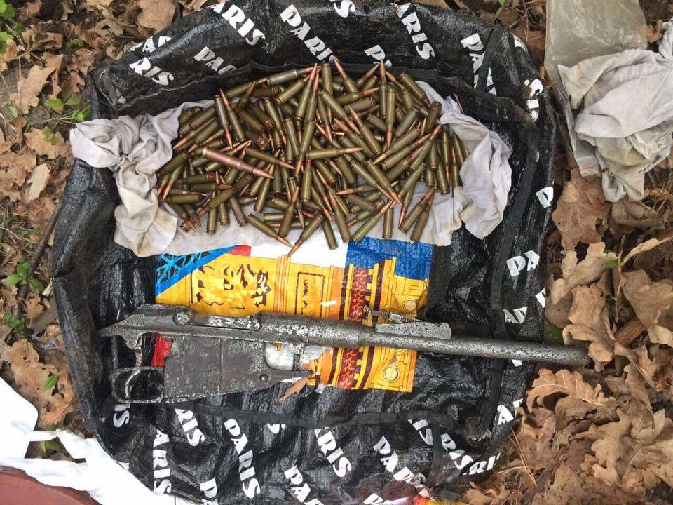 Співробітники Управління протидії наркозлочинності поліції Київщини виявили у лісовому масиві в с. Калинівка Васильківського району арсенал зброї та боєприпасів, який закопав 35-річний місцевий житель. Молодик пояснив, що бойову сумку йому передав для зберігання колишній учасник антитерористичної операції.