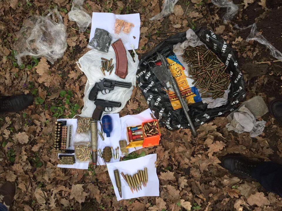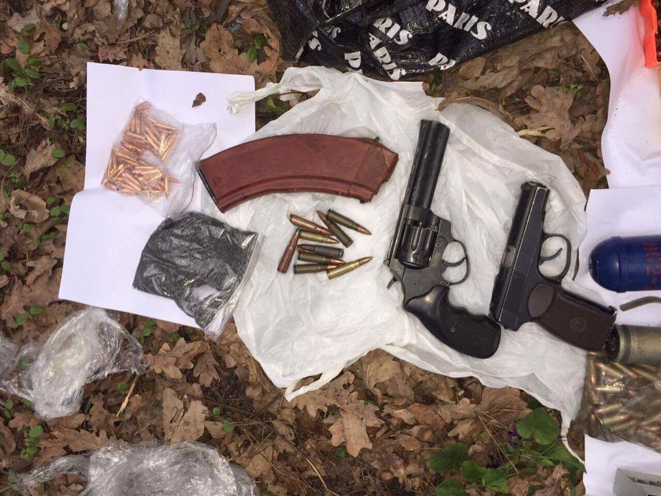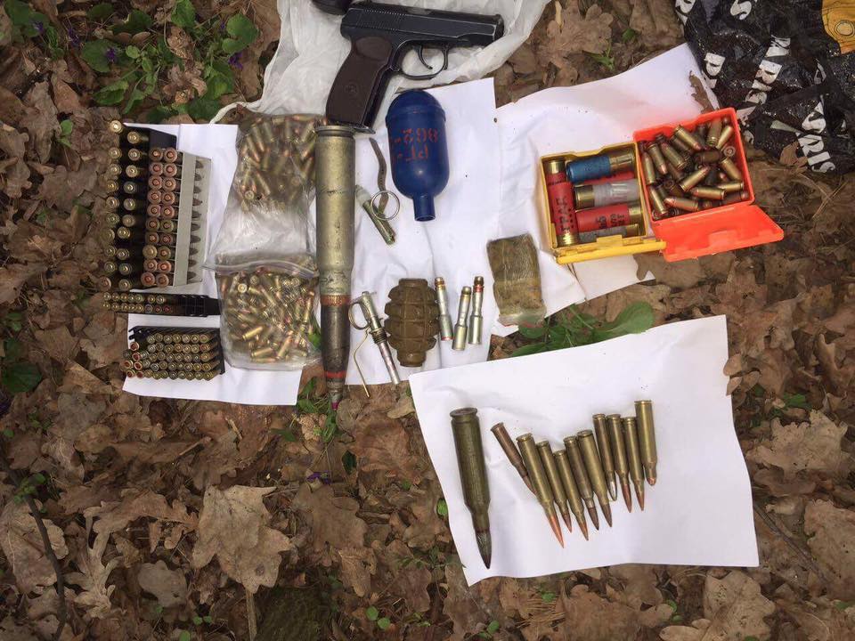 До вилучення небезпечної знахідки оперативно була задіяна вибухотехнічна служба. Загалом вилучено: два пістолети «Флобер», пневматичний пістолет, магазин від автомату, пристрій від гвинтівки, бойову гранату «Ф-1», газову гранату «РГД» та чотири запали до них, близько 600 різнокаліберних боєприпасів до пістолетів, автоматів і кулеметів, речовину, зовні схожу на порох і 70 грамів пластиду. Також, за місцем мешкання підозрюваного, було виявлено та вилучено близько 70 грамів наркозілля «конопля».