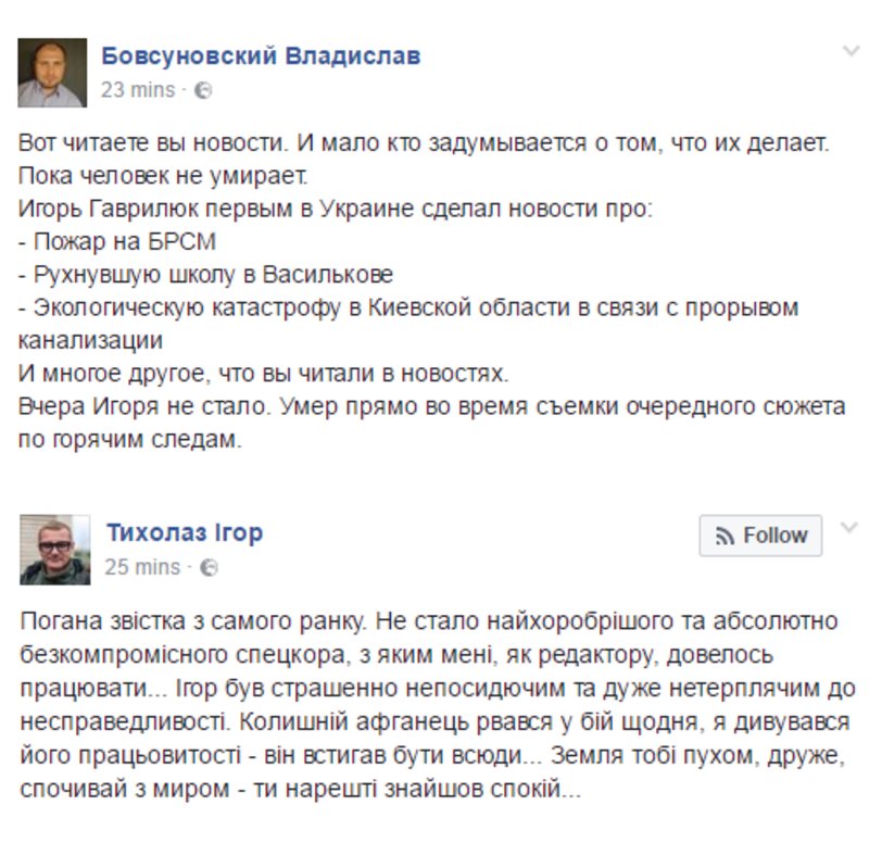 Соболезнования по поводу смерти Игоря Гаврилюка также выразили и другие коллеги журналиста.