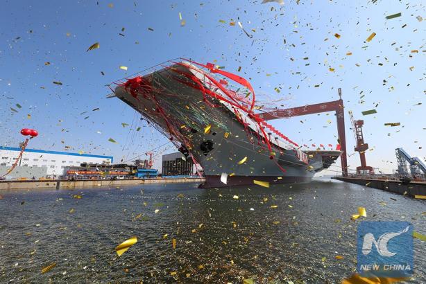 China launched its second aircraft carrier Wednesday morning in northeast China's Dalian shipyard in Liaoning Province pic.twitter.com/GS7tnSZlac