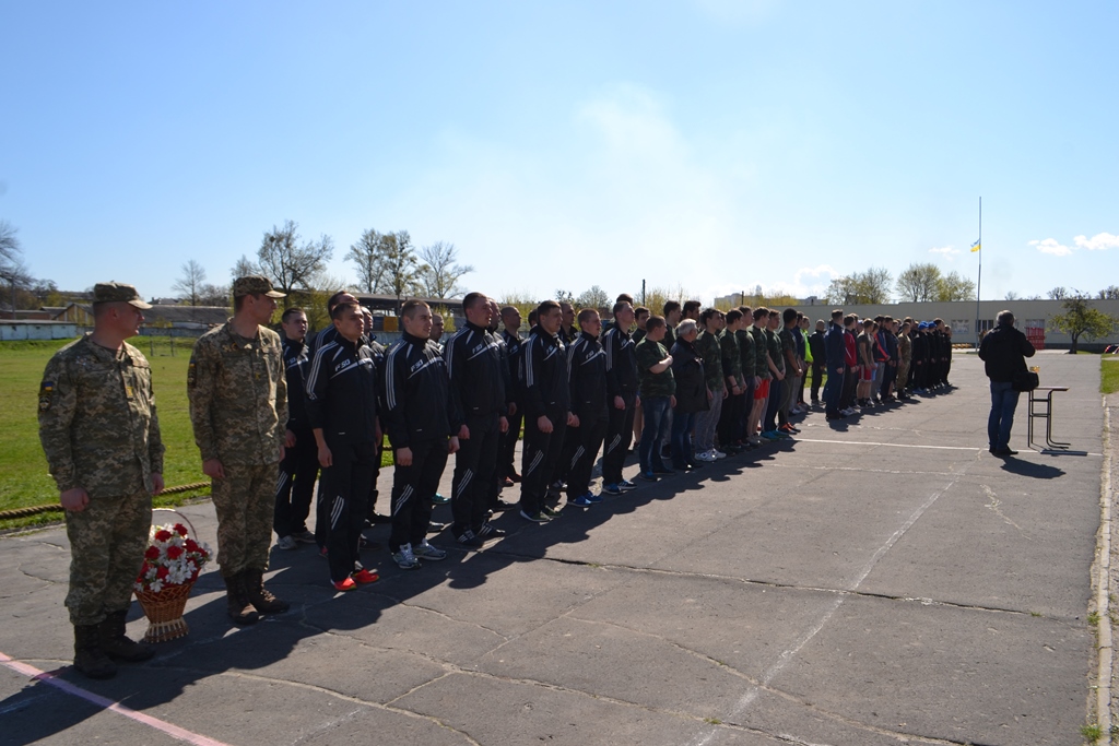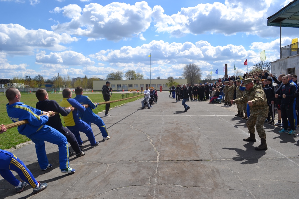 Далі учасники гри “Заграва” на стадіоні позмагалися з основних військово-прикладних видів спорту, а саме: у метанні гранати типу Ф-1 на дальність із автоматом в руці, розбиранні-збиранні автомату Калашникова, у піднятті гирі 24 кг, бігу на 1000 метрів, естафеті 4х400 метрів, підтягуванні на перекладені та перетягуванні канату.