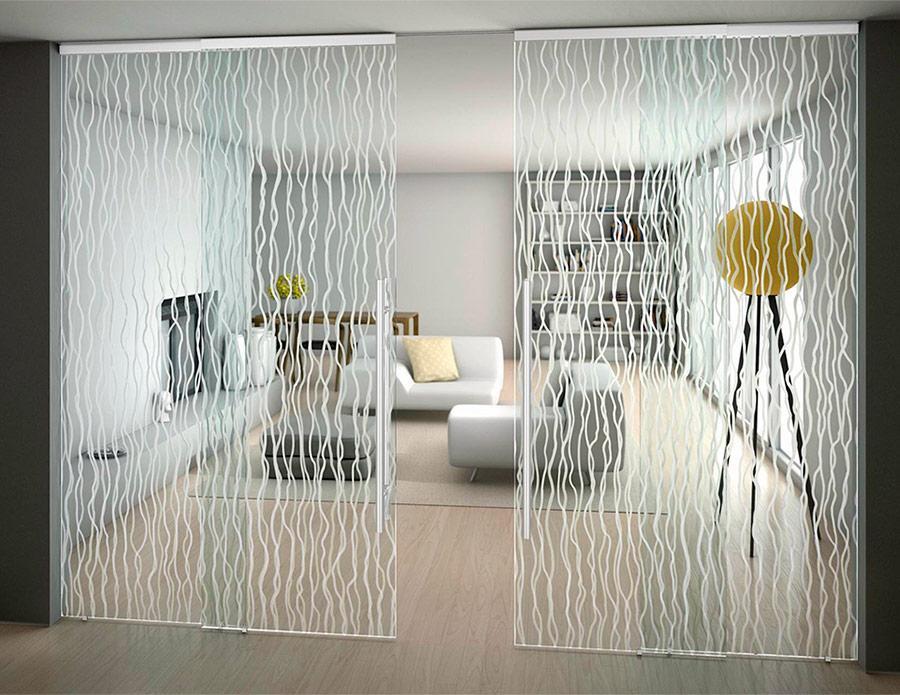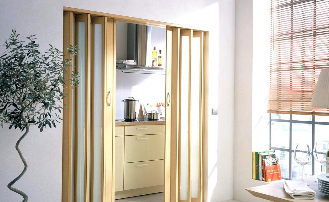 Модель идеальна в условиях ограниченного количества квадратных метров. Часто применяется для зонирования просторных комнат. Может состоять из нескольких створок, к ним крепятся специальные ролики, упрощающие открытие и закрытие дверей. Различают три вида дверей: откатные, кассетные и обычные двухстворчатые.