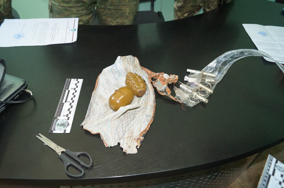Під час перевірки у хлопця було виявлено на тілі примотані скотчем запали до гранат, а самі гранати були заховані на ньому у білизні. Все виявлене було вилучено експертами – криміналістами та слідчими.