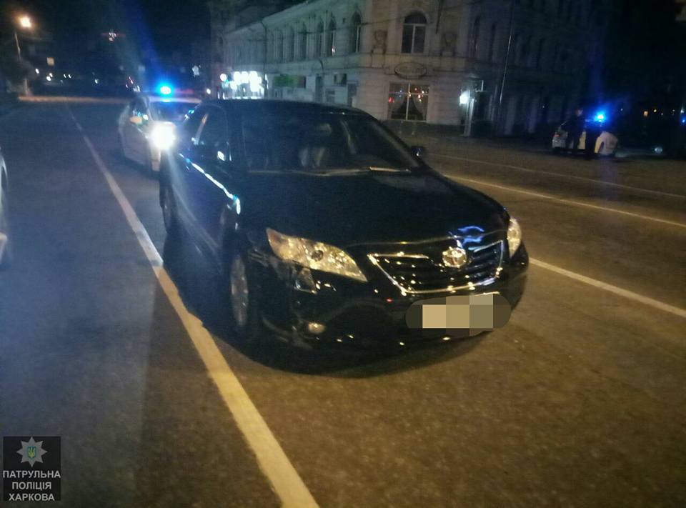 Сегодня около 3 часов ночи во время патрулирования Харькова полицейские заметили автомобиль Toyota Camry, который на глазах правоохранителей влетел в столб на площади Защитников Украины и продолжил движение.