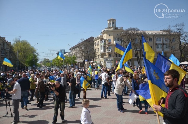 На акцию под названием "Мариуполь - это Украина!" накануне пришли сотни жителей города. Активисты заявили решительный протест действиям политиков от Оппозиционного блока раскачать ситуацию и в очередной раз разыграть карту "ущемления киевским нацистами русскоязычных граждан".