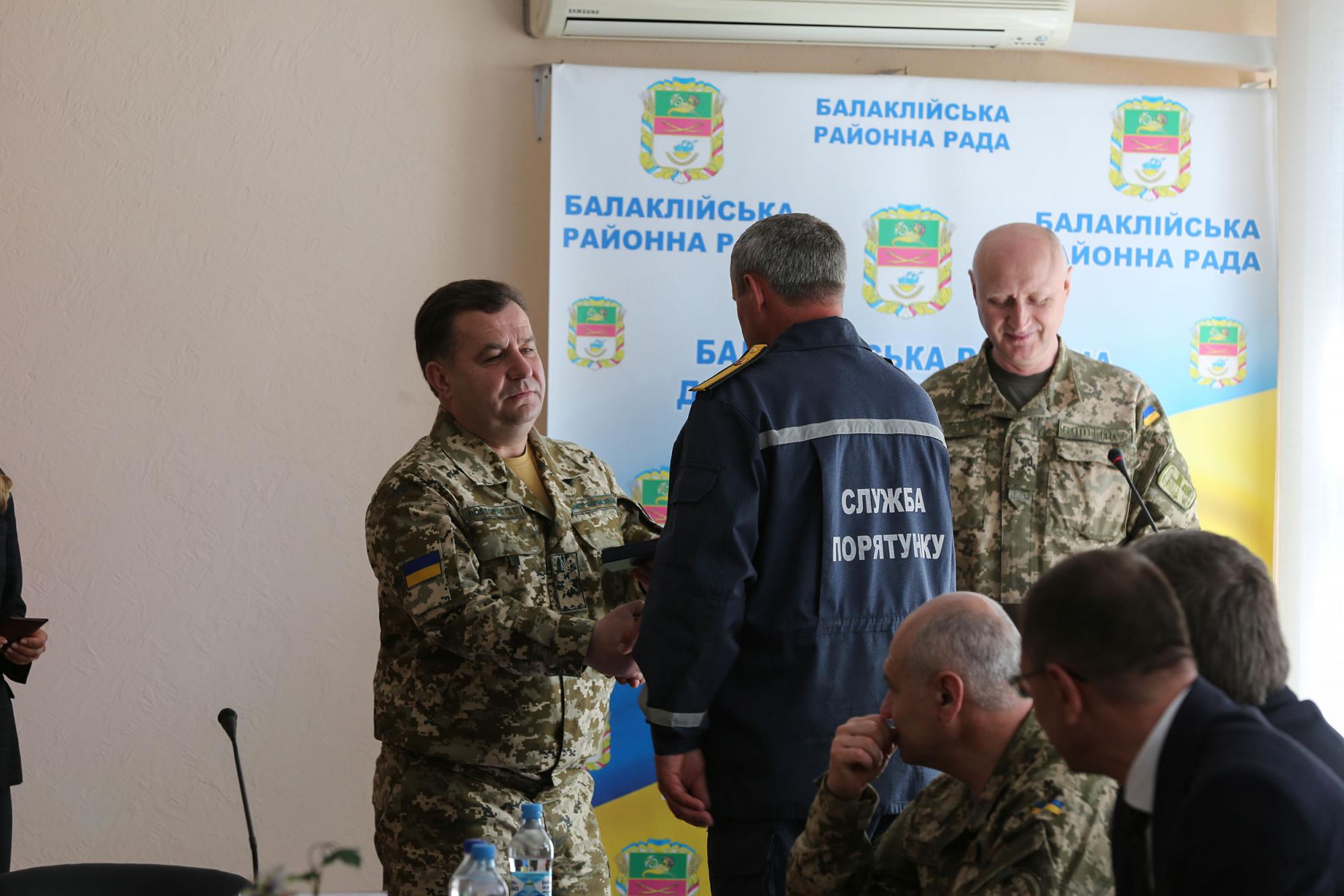 Також в рамках робочої поїздки до міста Балаклія Харківської області, Міністр оборони України генерал армії України Степан Полторак нагородив шістнадцятьох учасників ліквідації наслідків надзвичайної події на 65-му арсеналі.