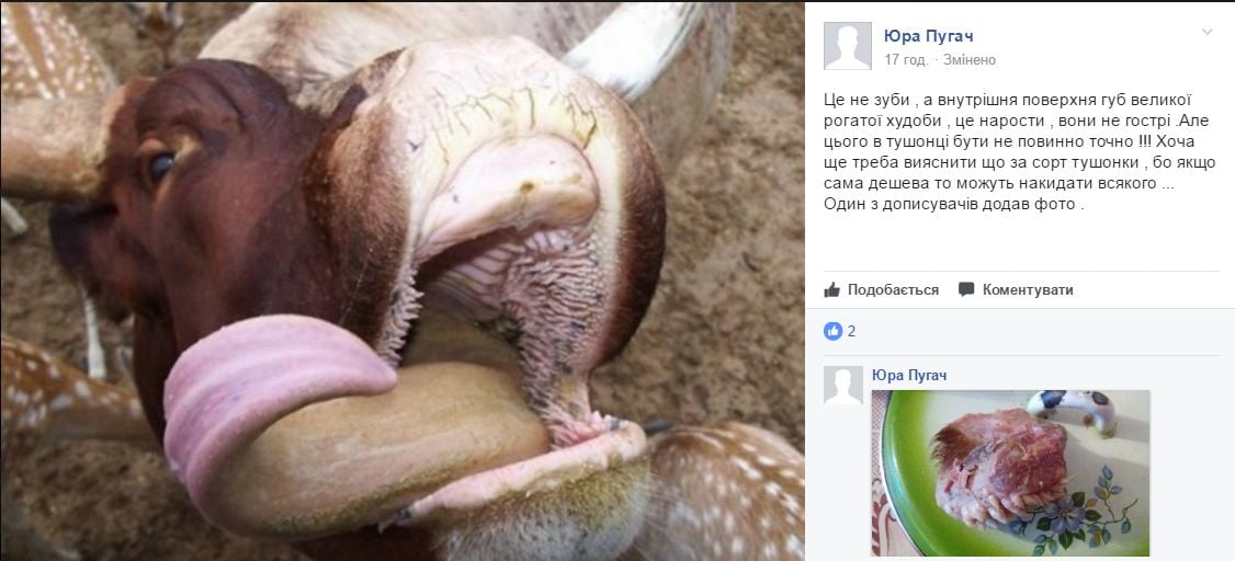 "На фото - щековина коровы. Белые фрагменты - это вкусовые сосочки", - пояснил ветеринар.