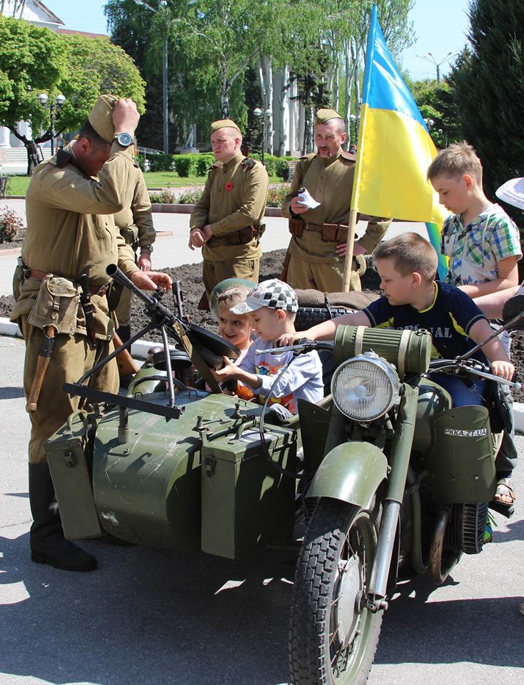 Жителям города были продемонстрированы образцы военной автомобильной техники, униформа и макеты стрелкового оружия времен Второй мировой войны, состоялось возложение цветов к памятнику павшим защитникам города, также проведены информационные акции о месте и роли украинского народа в победе над захватчиками.