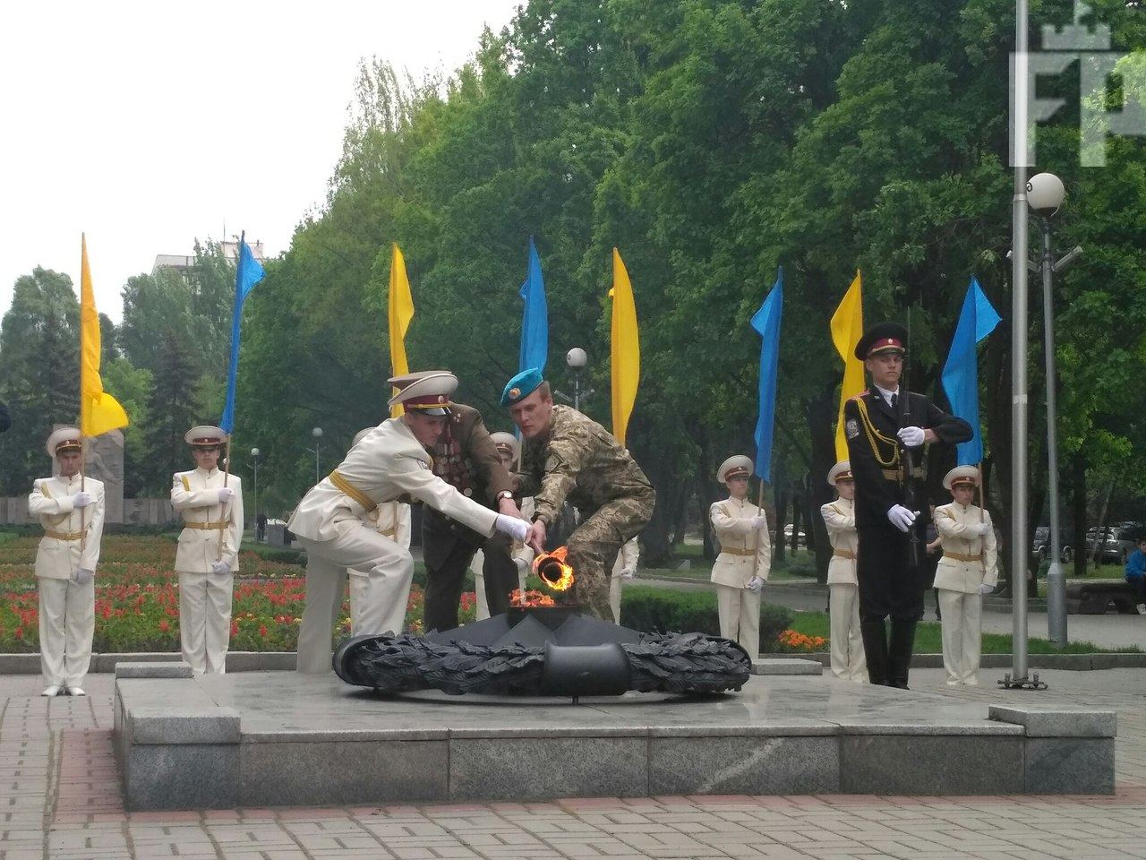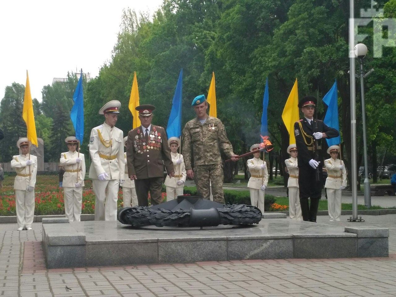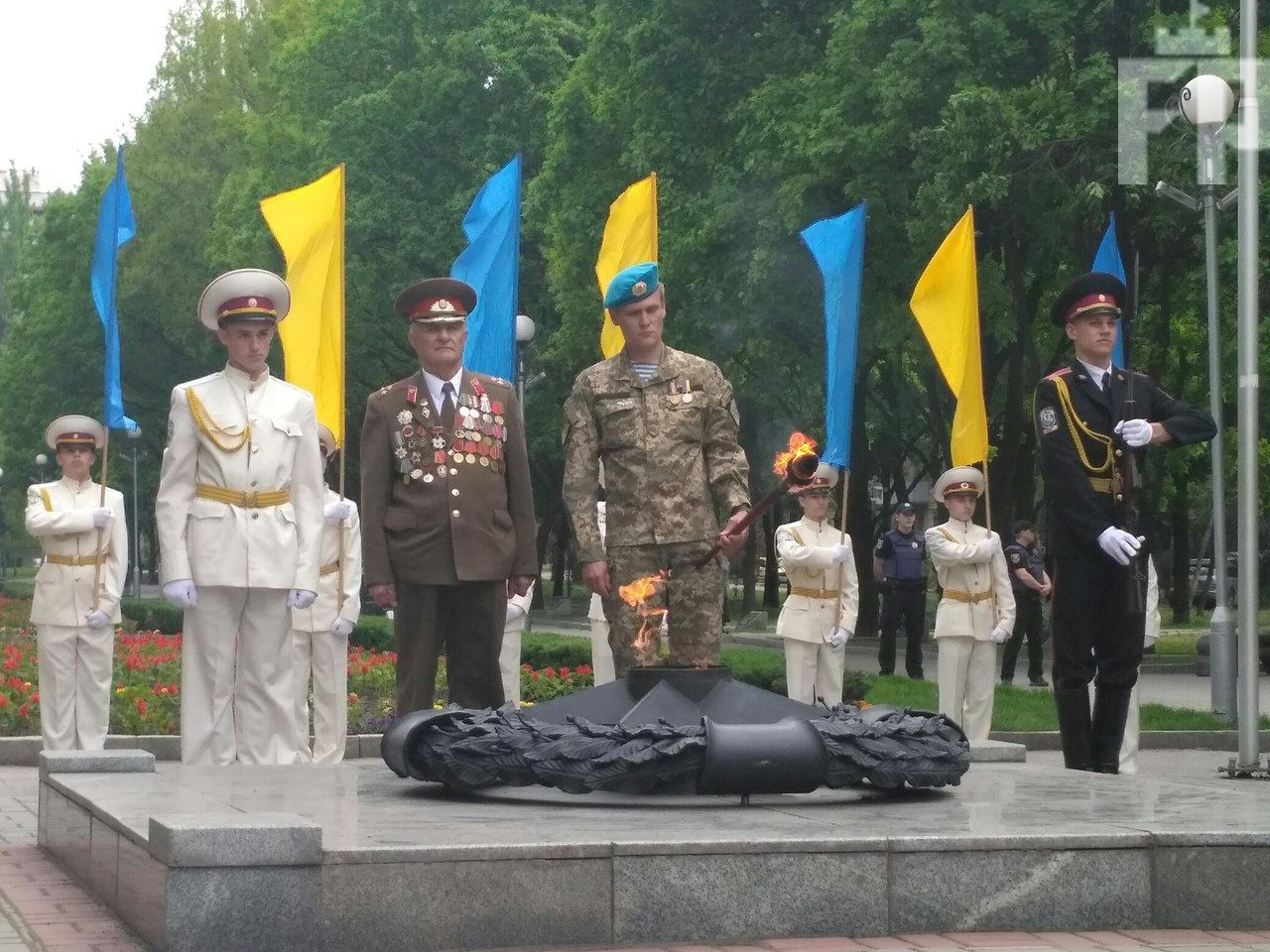 Вечный огонь выпала честь зажечь ветерану Второй мировой войны Виктору Варвашеню и командиру 79-ой бригады Сергею Мандалине, отмечает Форпост.