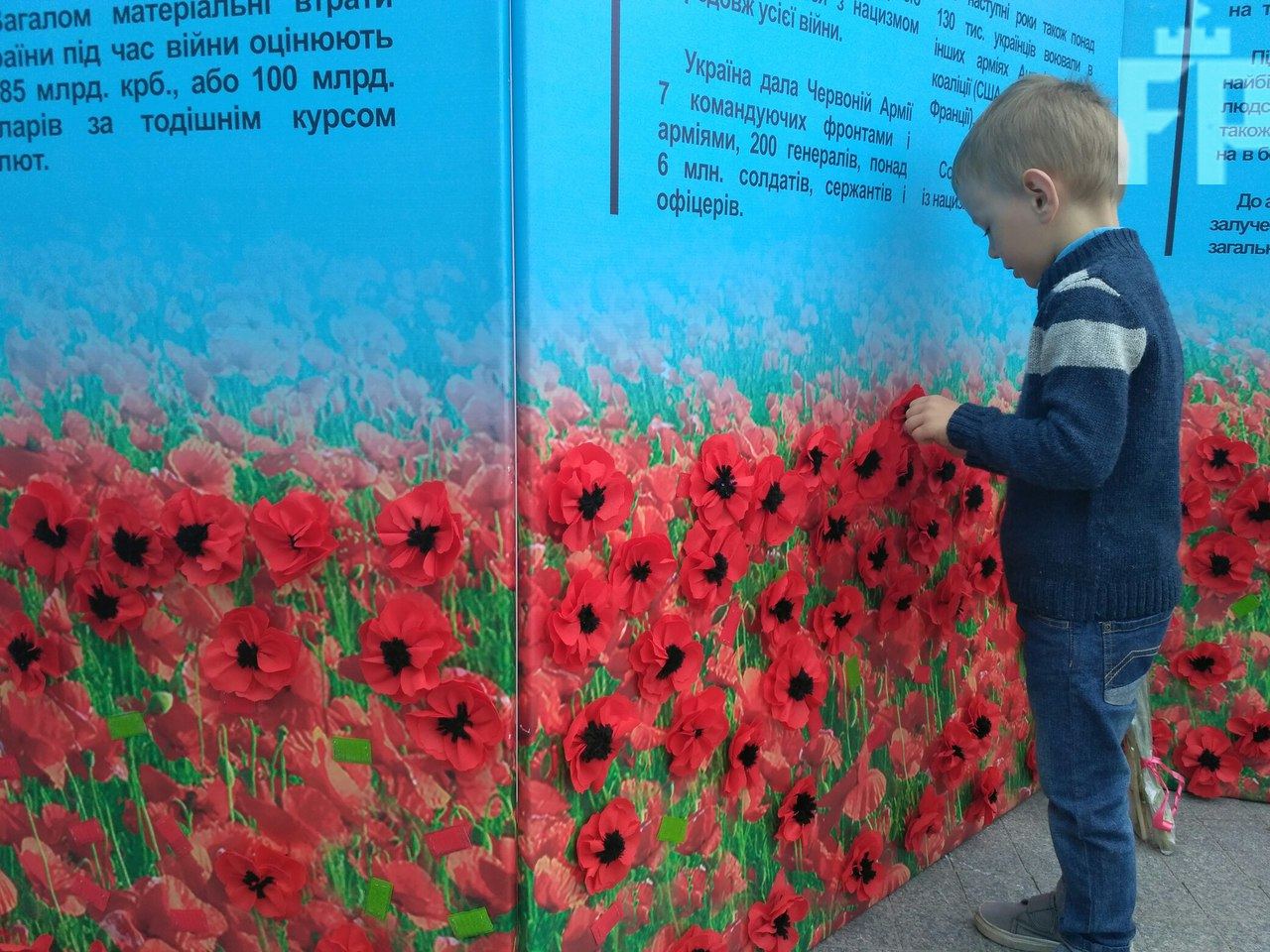 Прямо во время акции все желающие смогли сделать собственноручно красный маки – символ жертв военных конфликтов и украсить ими панно.