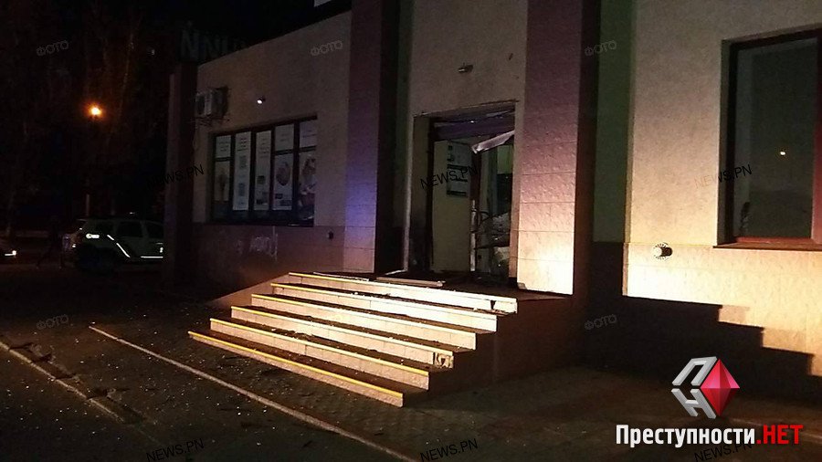 В центре Николаева прогремел мощный взрыв. Неизвестные подорвали двери в банк "Південний" - взрывной волной выбило окна квартир в рядом стоящем доме.