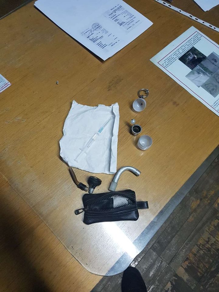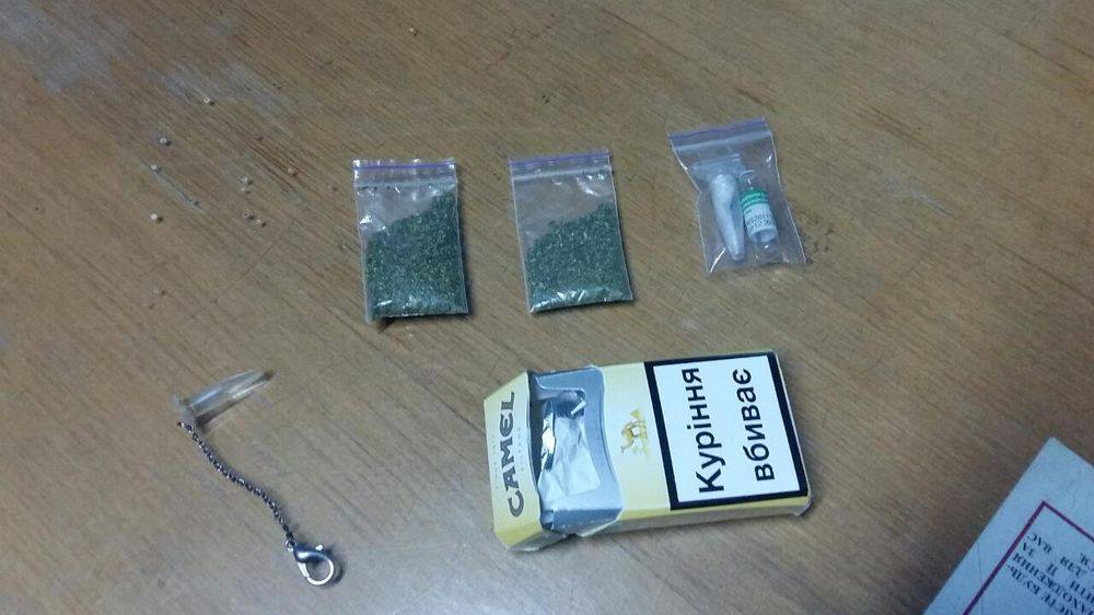 В результаті поліцейські виявили у 40-річного чоловіка в пачці з-під цигарок два поліетиленові пакети з речовиною сіро-зеленого кольору вагою близько 10 грамів та шприц з речовиною прозорого кольору об’ємом 1 мл.
