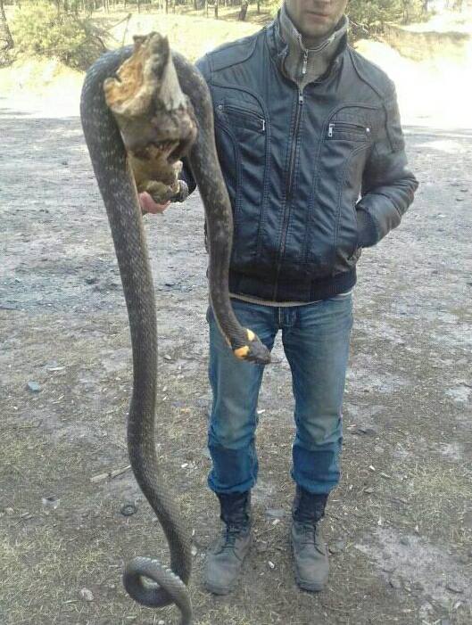 В Шишаках Полтавской области обнаружен аномально большой уж, его фото выложил на своей странице в Facebook глава фракции УКРОП в Полтавском облсовете Сергей Соловей.